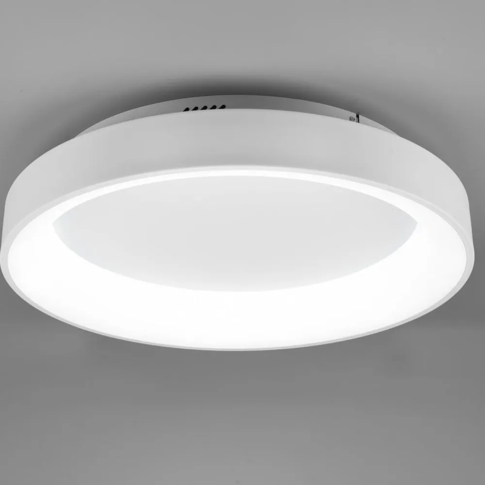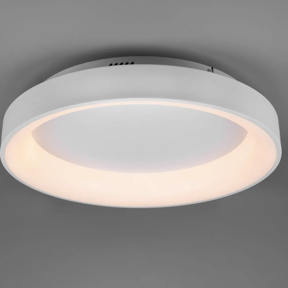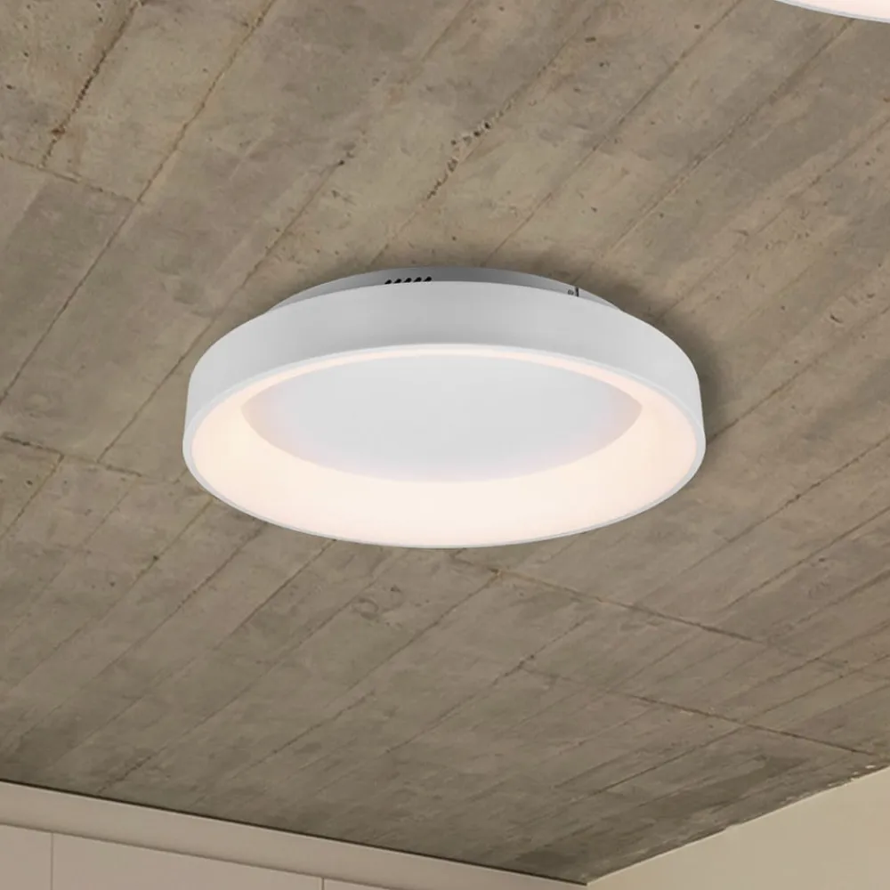 LED-loftlampen Girona kombinerer høj funktionalitet med et reduceret design og passer godt ind i ethvert boligmiljø. Det kan bruges som et moderne armatur i stue- eller spiseområdet eller som en lyskilde på loftet i soveværelset. Da den har en natlysfunktion, er den også velegnet til brug i gangen eller på børneværelset. For at sikre optimale lysforhold på det pågældende sted til enhver tid kan lysfarven justeres trinløst og spænder fra behageligt varmt hvidt lys til klart dagslys. Desuden har Girona en hukommelsesfunktion, som gør, at den sidst anvendte lysindstilling anvendes, når loftslampen tændes igen. Desuden gør den integrerede lysdæmper det muligt at ændre lysintensiteten og tilpasse den til individuelle behov. Lampen betjenes med en fjernbetjening (medfølger i leveringen).