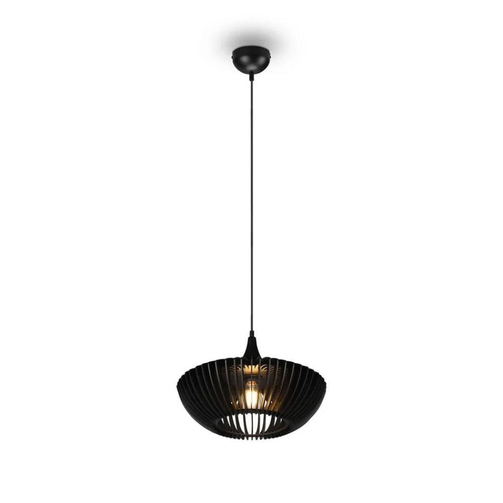 Vær den første til at anmelde “Trio Lighting Pendellamper>Hængelampe Colino af trælameller, sort” Annuller svar