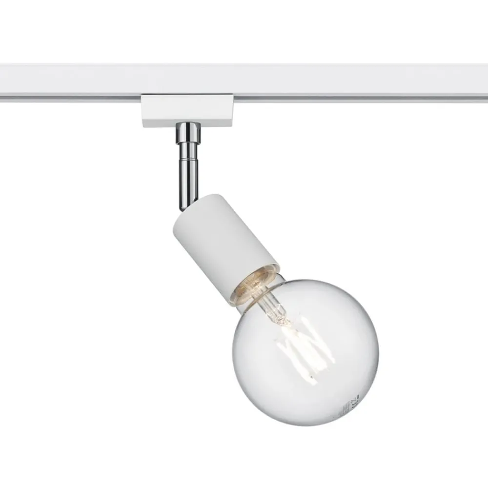 Cylindrisk E27-spot Diallo til 2-faset DUOline Denne moderne skinnespot, der er udformet som en enkel cylinder, viser lyskilden åbent og er derfor meget velegnet til glødelamper (se tilbehør). På den måde kan man opnå en dekorativ accent med DUOline 2-faset skinnesystem. Takket være den drejelige og svingbare fastgørelse overbeviser spottet også funktionelt.