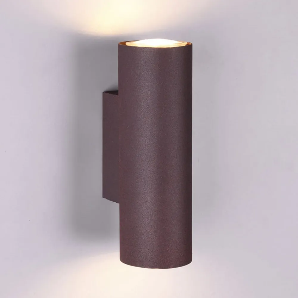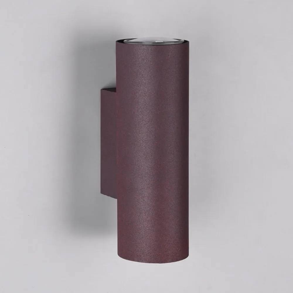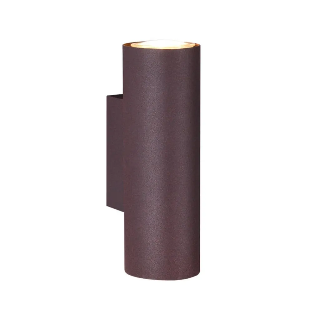 Rustfarvet Marley-væglampe, opadgående og nedadgående spotlight Marley-væglampen skaber flotte lysaccenter på væggen med sin opadgående og nedadgående lysstråle i mange områder. Den kan bruges i stuen eller gangen og i mange indretningsstile takket være sin cylindriske, enkle form og rustfarvede overflade, hvorved den ser særlig effektiv ud, når flere lamper er monteret på en lang væg. Det komplette belysningskoncept for et rum kan realiseres i kombination med andre lamper fra serien.