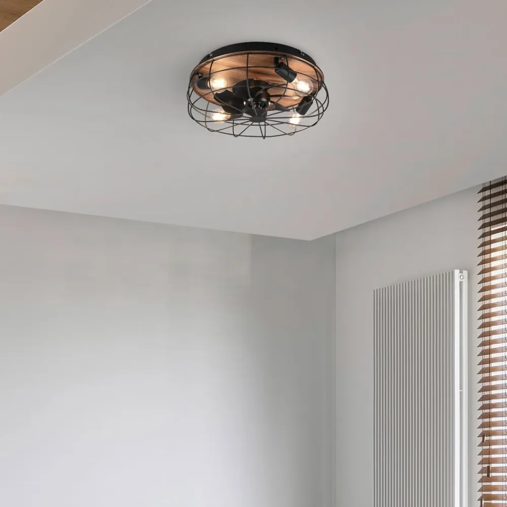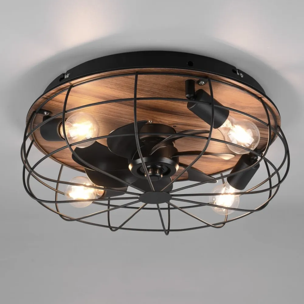 Trondheim loftventilator fjernbetjening 4xE27, træ^Reality Leuchten Outlet
