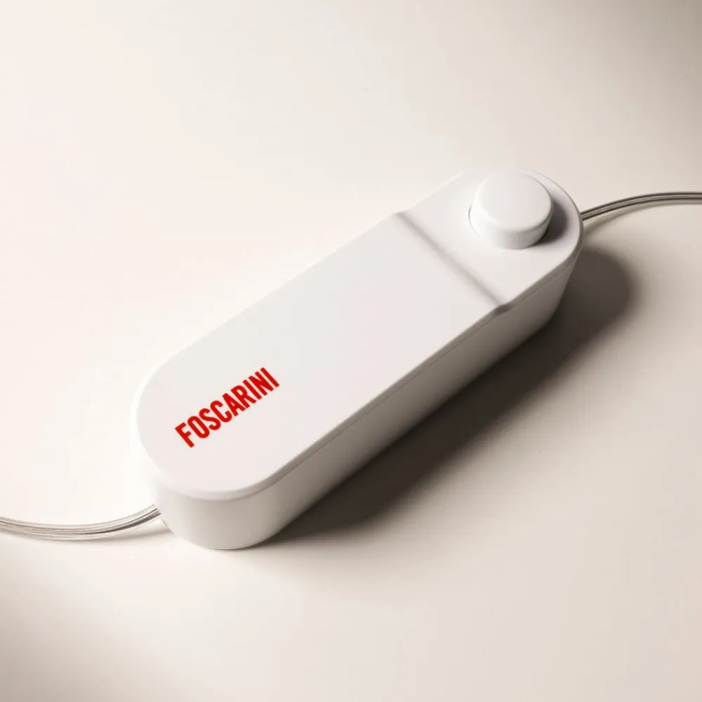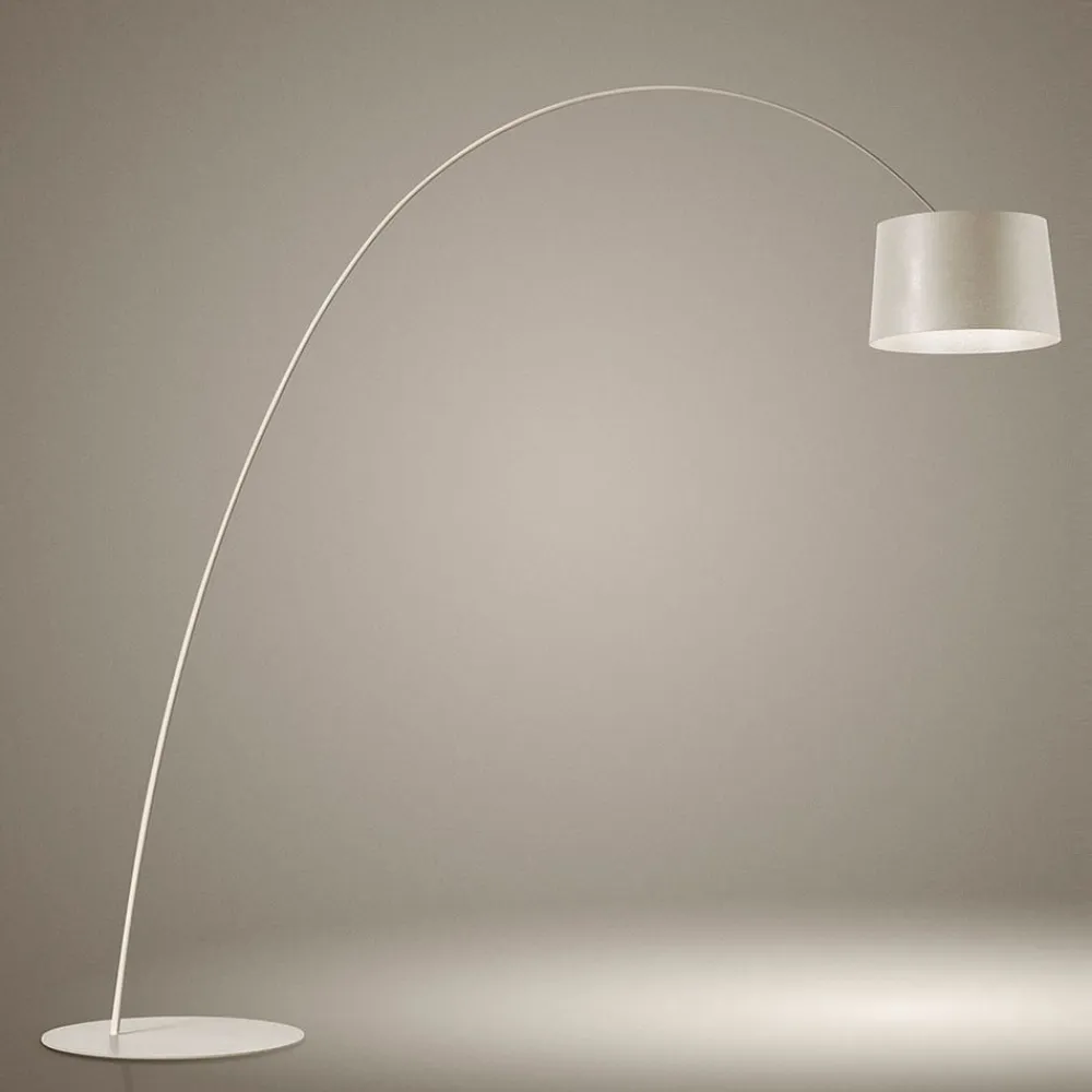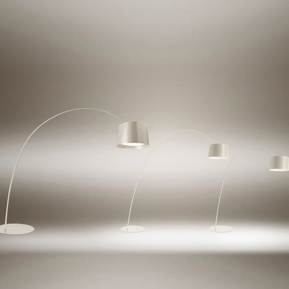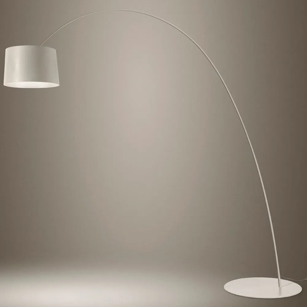 Twiggy Elle LED buet gulvlampe med ekstra længde Twiggy Elle-versionen har en længere ramme for endnu bedre belysning i stuer og soveværelser. Den buede stang af lakeret metal understøtter den uigennemsigtige plastskærm med lethed. LED-modulet, der er udviklet og fremstillet af Foscarini, skinner opad og nedad på begge sider og genererer indirekte lys opad i rummet eller direkte lys, for eksempel til læsning om aftenen. Små kontravægte, der er fastgjort til lampeskærmens hoved, gør det muligt at variere skærmens højde. Foden er designet til at være flad og kan derfor nemt skubbes ind under en sofa for at spare plads. Twiggy Elle er fremstillet af det anerkendte designfirma Foscarini, som blev grundlagt i 1981 i Marcon, Venedig. Takket være sit samarbejde med anerkendte designere har Foscarini en farverig portefølje af Made in Italy-armaturer af høj kvalitet.
