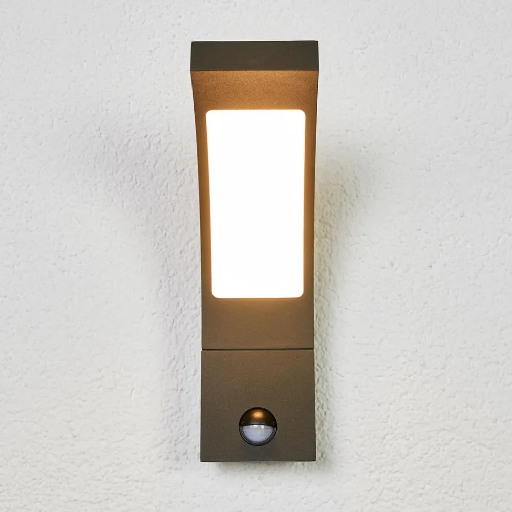 Lucande udendørs LED-væglampe Juvia, sensor, 27 cm, grå, IP54