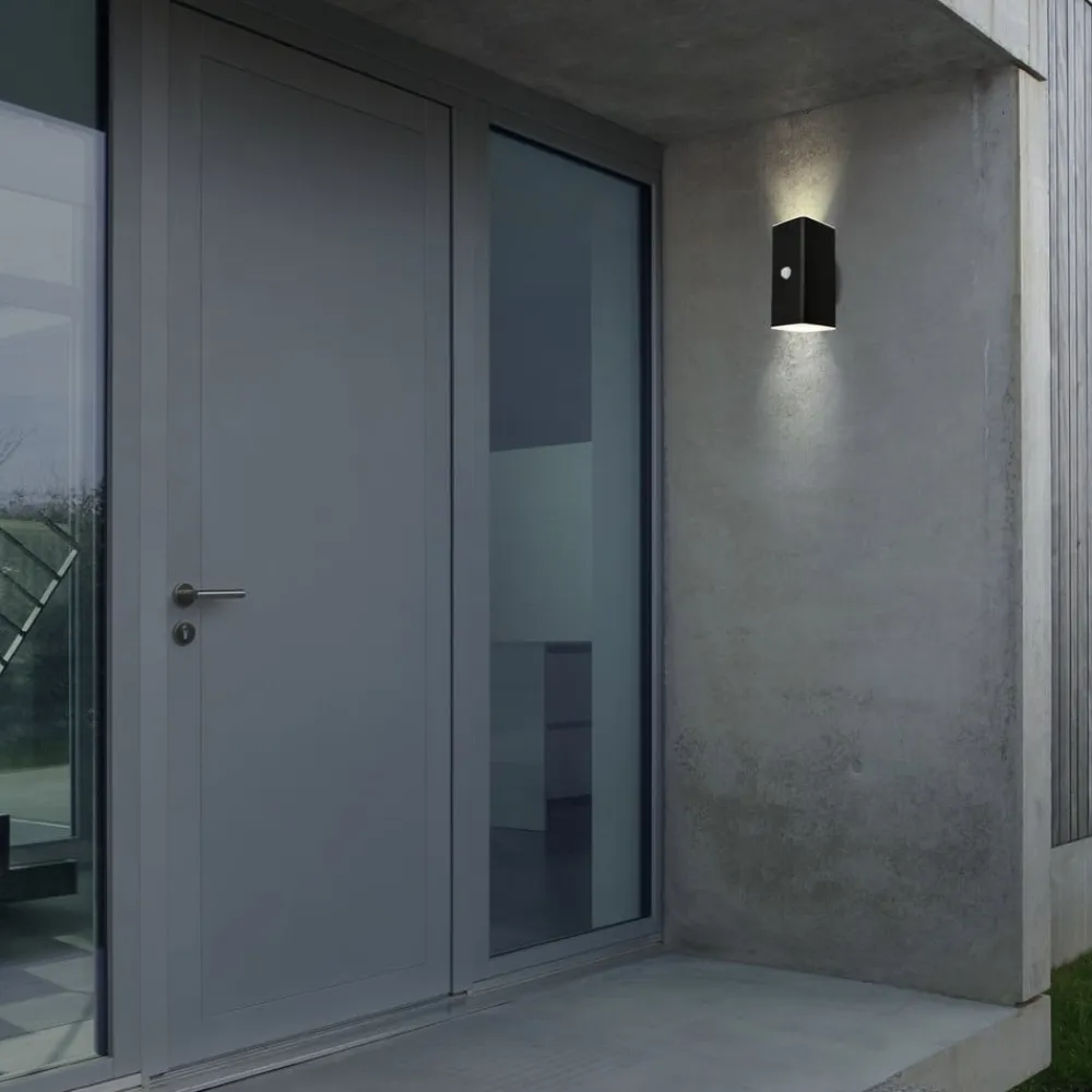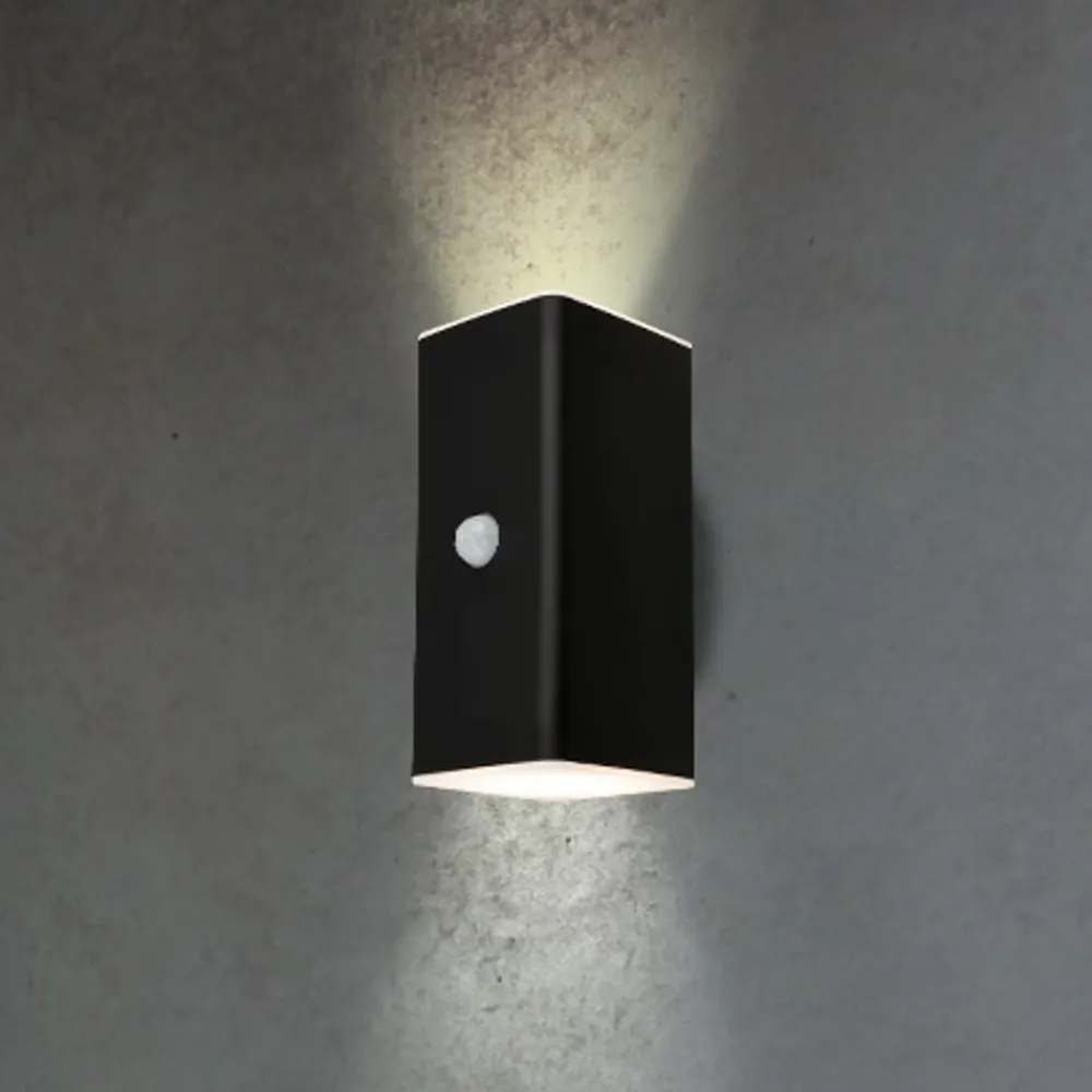Udendørs LED-væglampe, sort, sensor, op/ned