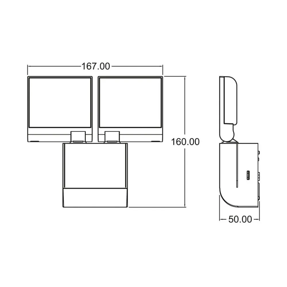 Theben theLeda S17-100 er en formskøn, trådnetværkskompatibel LED-spotlight til udendørs brug med integreret bevægelsessensor og to drejelige og vipbare LED-paneler (kan drejes vandret ± 20/45° og vippes 70° nedad).