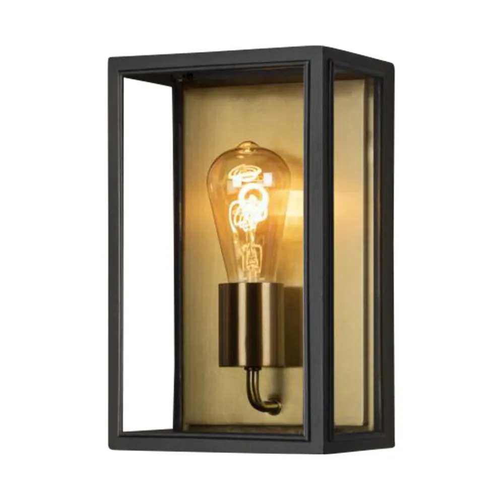 Carpi-armaturets form minder om en lanterne, der er omgivet af klare glasindsatser. De sorte metalstænger i sort giver et moderne look, som bliver iøjnefaldende ved hjælp af glødepærer i form af en pære. Takket være det messinglakerede bagpanel skaber armaturet et behageligt varmt lys. Desuden gør brugen af materialer af høj kvalitet dette armatur unikt.