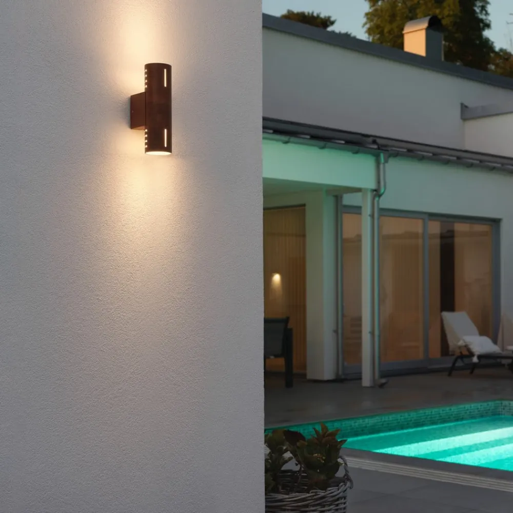 Cuneo udendørs væglampe med opad- og nedadrettet lys Med kapslingsgrad IP54 er den optimalt beskyttet mod støv og stænkvand, hvilket gør den til det perfekte valg til udendørs brug.