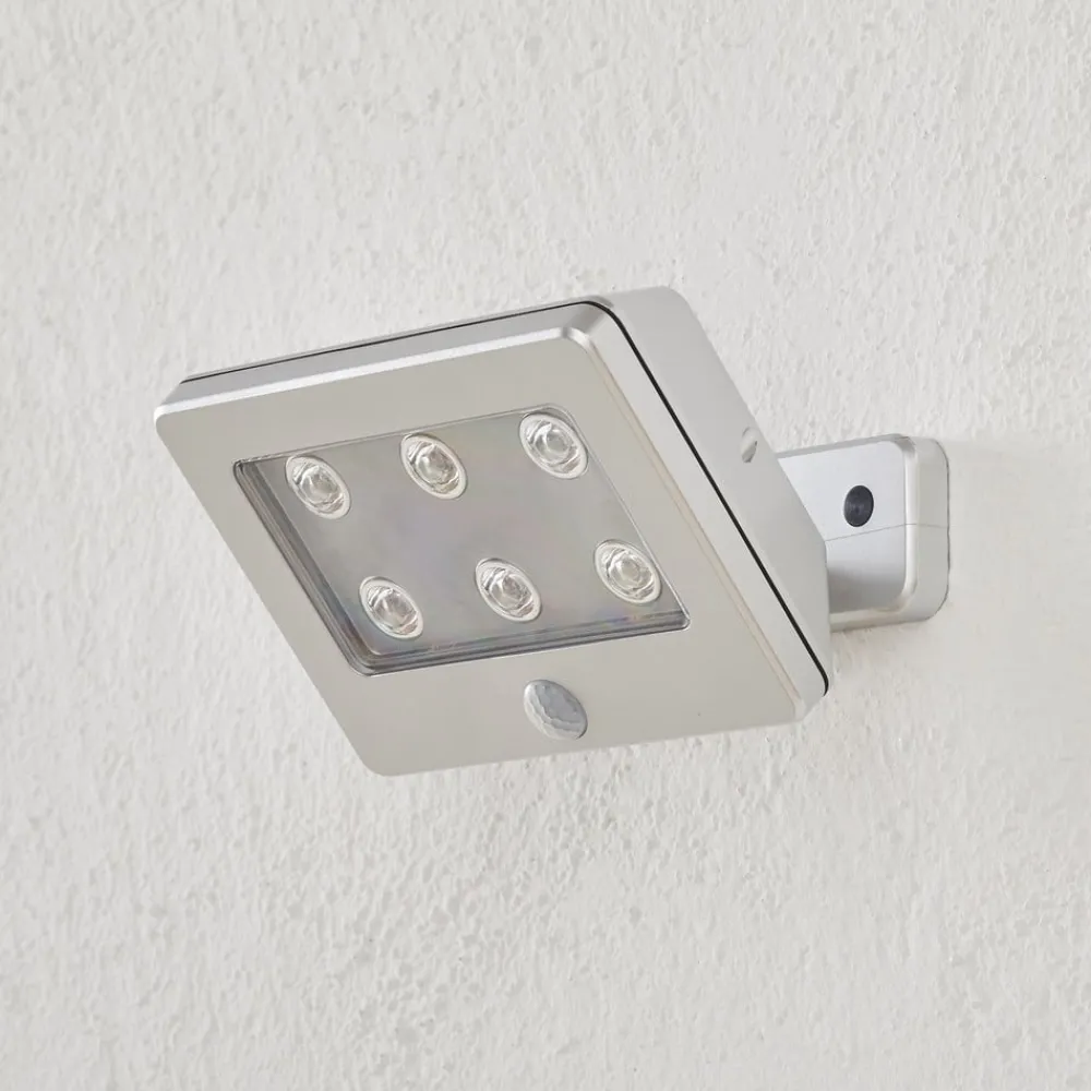 Lysere med sikkerhed: Kollig sensor udendørs væglampe med batteridrift Den titaniumfarvede Kollig udendørs væglampe til husfacaden er en lysende ledsager på vej til husets indgang. Takket være den integrerede bevægelsesdetektor tænder den udendørs væglampe kun, når nogen nærmer sig inden for tre meter, og slukker igen efter 45 sekunder. Det sparer strøm og skåner miljøet. Takket være seks moderne LED’er imponerer Kollig udendørs væglampe med en fremragende energieffektivitet i klasse A+. Reflektoren kan justeres individuelt for at sikre optimal belysning af stier og trapper. Det betyder, at besøgende altid finder den ideelle vej til hoveddøren, og at ubudne gæster bliver afskrækket af det automatisk aktiverede lys. Det gør Kollig udendørslampen til et sikkerhedsplus på enhver husfacade. Leveringen omfatter allerede seks batterier og det nødvendige installationsmateriale.