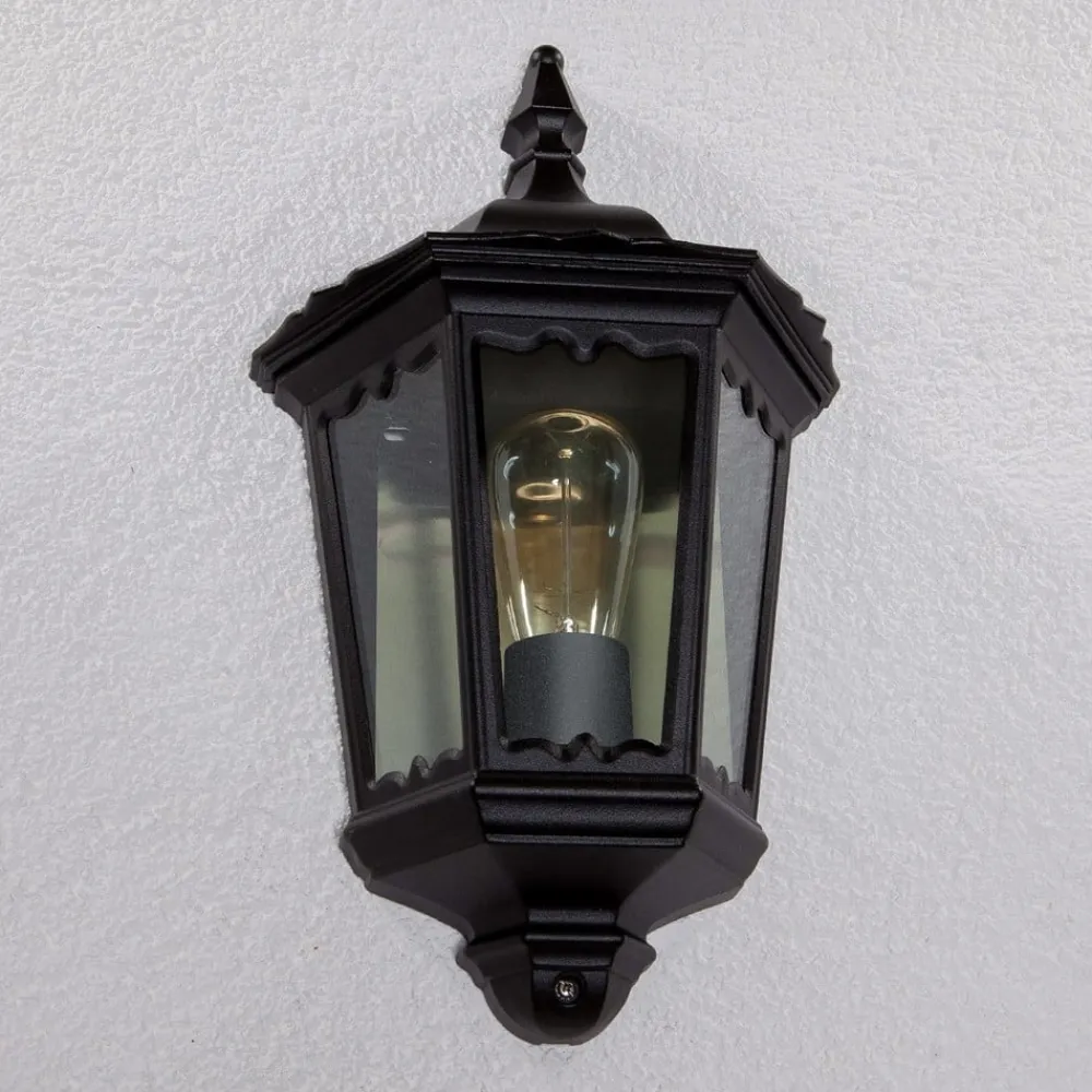 Lieva udendørs væglampe kan betjenes med en sparepære Med sit klassiske design er Lieva udendørs væglampe velegnet til mange anvendelser rundt om i huset. Den udendørs væglampe betjenes med en klassisk traditionel glødepære eller, hvis det ønskes, med en sparepære for at beskytte din tegnebog og miljøet. Lampekroppen er lavet af aluminium, og ruderne er lavet af klart glas, så intet af lysstyrken fra den traditionelle glødepære går tabt.