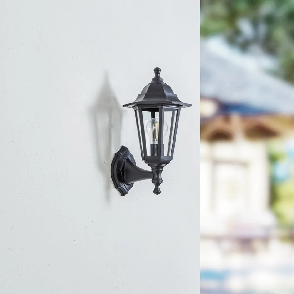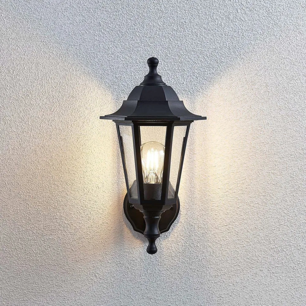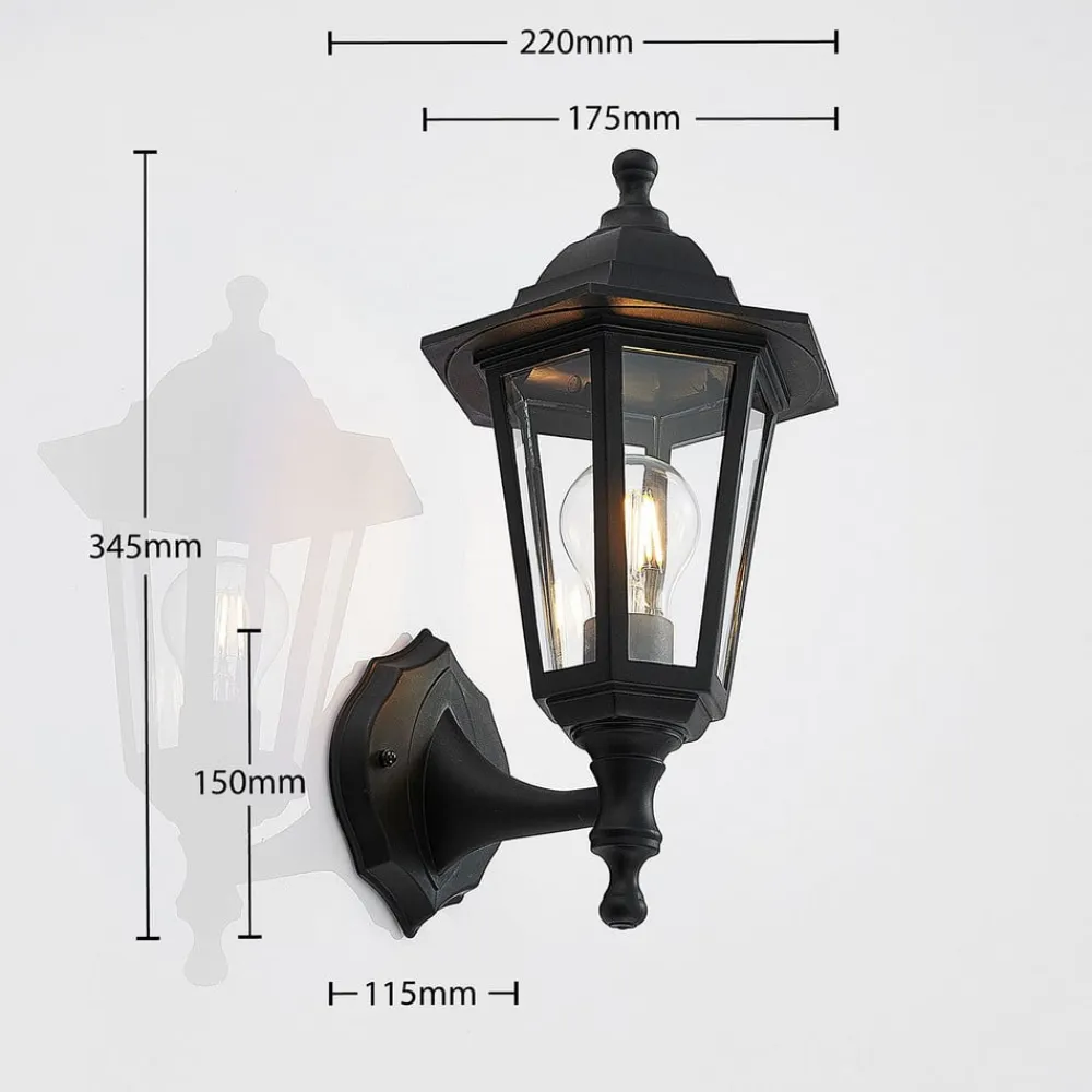 Sort, nostalgisk udendørs væglampe Nane i lanternestil, saltvandsresistent
