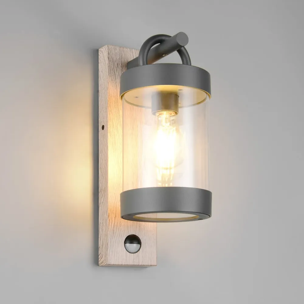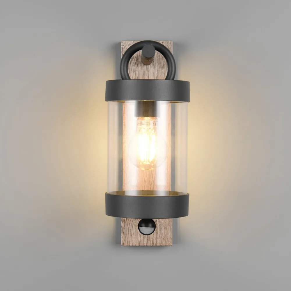 Udendørs væglampe Sambesi, trælook, trykstøbt aluminium, sensor^Trio Lighting Clearance