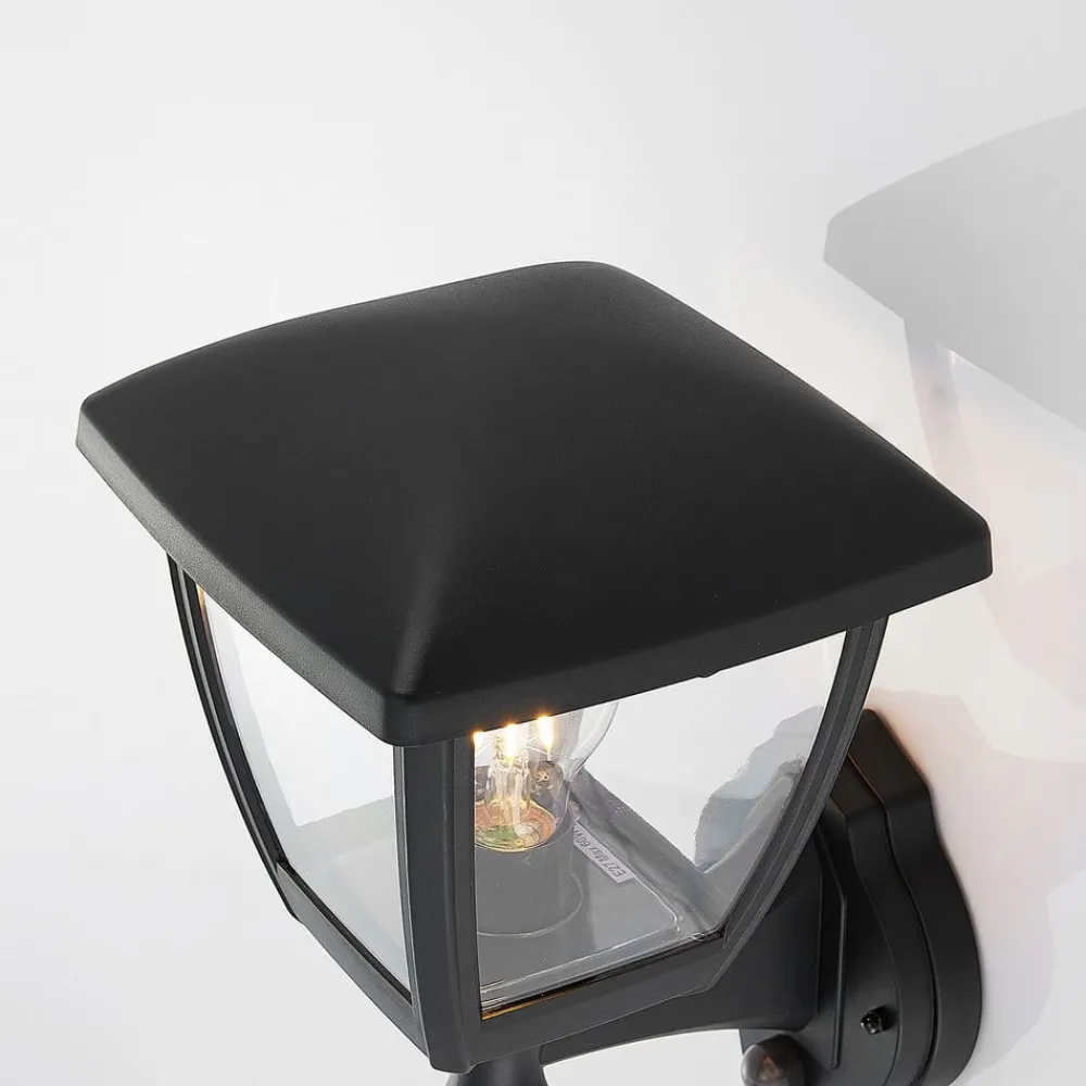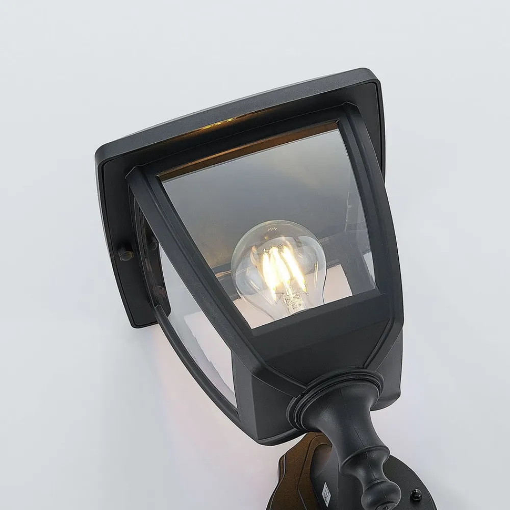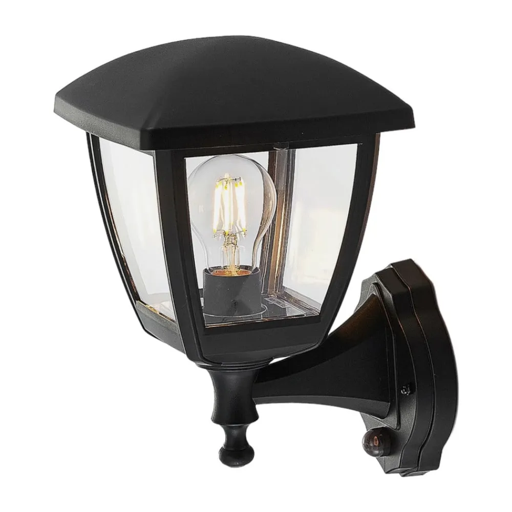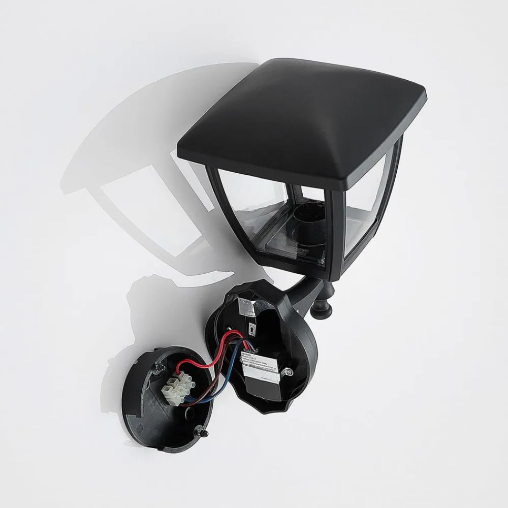 Sort udendørs væglanterne Acelya med klar plastindsats og lanterneformet design