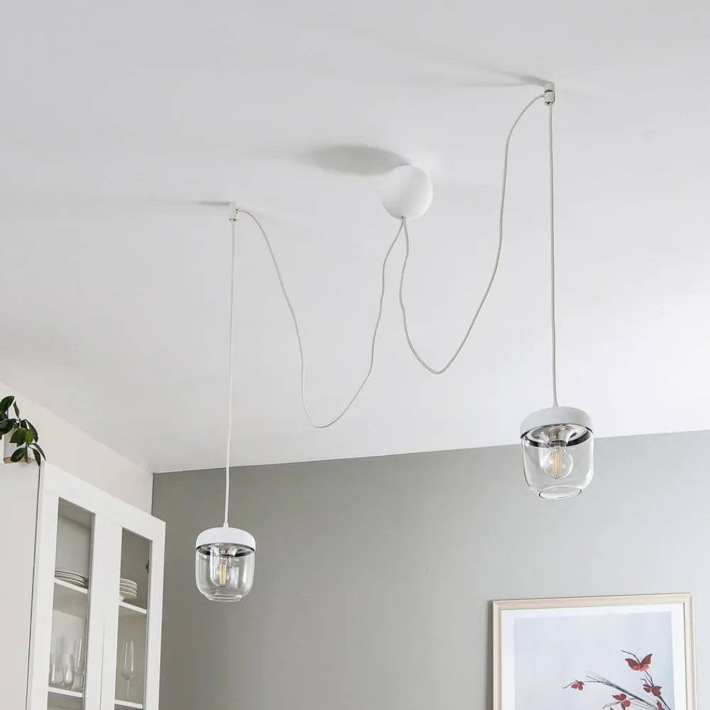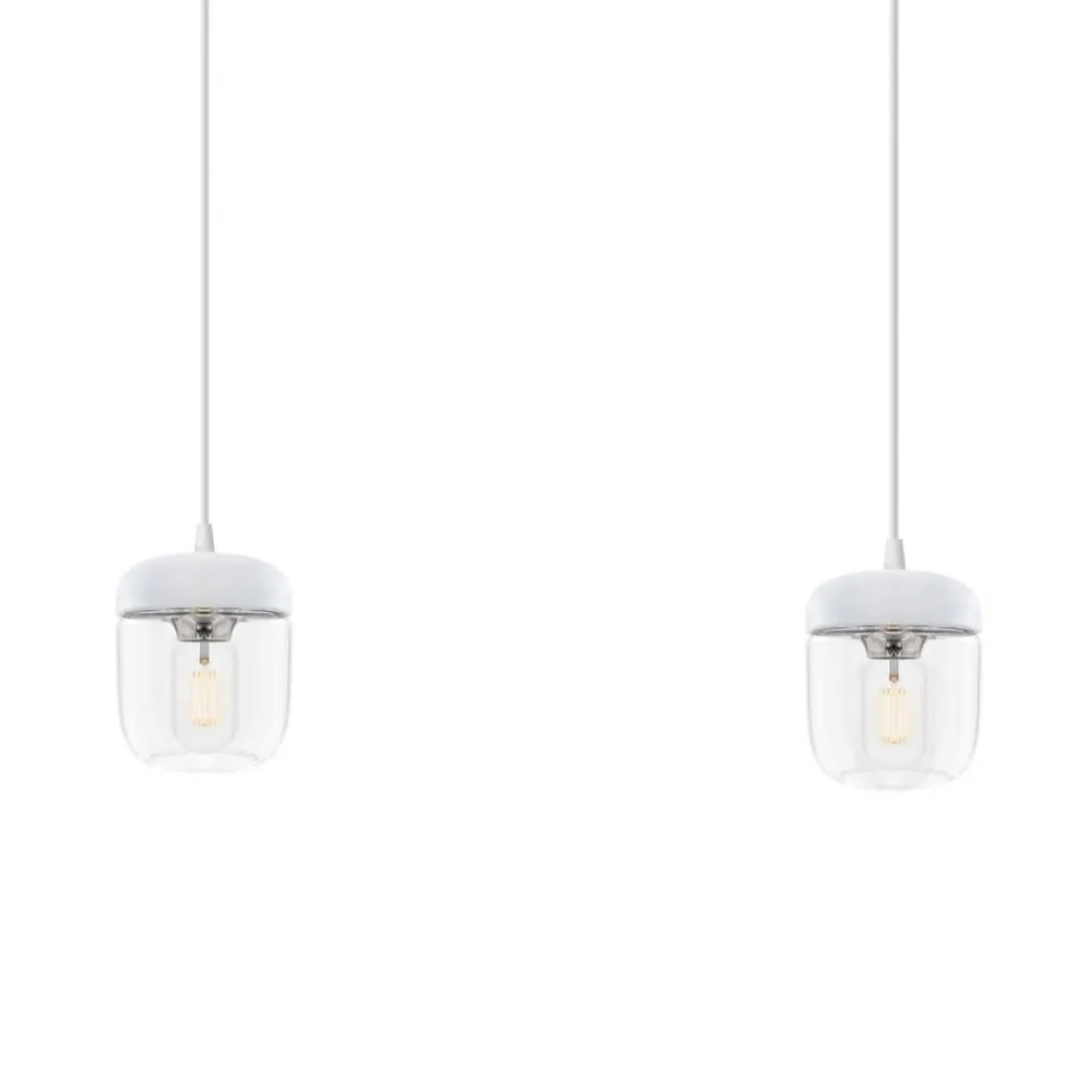Pendellampen Acorn med 2 lyskilder i hvid og stål