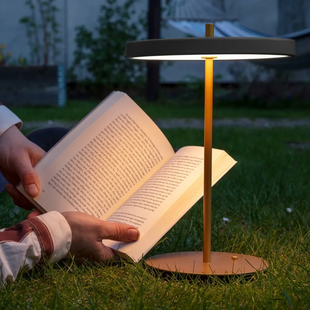 LED-bordlampe Asteria Move med genopladeligt batteri til bærbar funktion Graciøs og udstyret med utrolig bevægelsesfrihed kan LED-bordlampen Asteria Move fra det danske designhus UMAGE bruges overalt i hjemmet. Takket være det indbyggede lithium-ion-batteri kan lampen give lys i op til 35 timer i gennemsnit uden strømtilslutning. Den runde lampeskærm huser varmhvide LED’er, der udsender et hyggeligt og behageligt lys, som er blændfrit, blødt og jævnt fordelt til alle sider takket være den integrerede diffuser. Med touch-dæmperen på den runde, massive base kan lyset dæmper til fire forskellige lysstyrker ved at trykke flere gange på kontakten. Asteria-kollektionen er designet af medstifter og kreativ chefudvikler Søren Ravn Christensen. Designeren er autodidakt og har en sjælden evne til at kombinere design og økonomi. Han siger om sin kollektion: “Asteria-kollektionen, der er skabt i krydsfeltet mellem design, teknologi og håndværk, har integrerede LED-lys i en slank, minimalistisk form.” Sammen med den nuværende administrerende direktør, Jacob Nannestad Hansen, grundlagde Christensen virksomheden UMAGE by VITA copenhagen i 2008. Producenterne af designerlamper lægger særlig vægt på bæredygtige materialer og teknologi af høj kvalitet i produktionen af deres armaturer for at give kunderne det størst mulige udbytte. Konceptet er en succes. I dag har den danske belysningsvirksomhed over 1.500 afdelinger i mere end 50 lande verden over – bærbar – batteridrevet – lysstyrken kan justeres i fire niveauer: 1. niveau 5 lumen ca. 168 timer 2. niveau 20 lumen ca. 50 timer 3. niveau 50 lumen ca. 20 timer 4. niveau 100 lumen ca. 10 timer