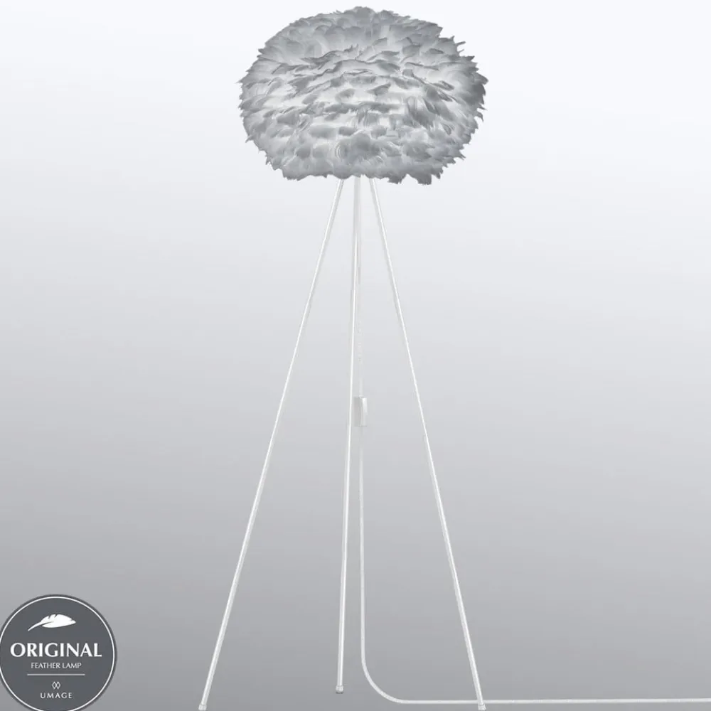 Designer standerlampe Eos medium med trebenet stativ og skærm i gåsefjer