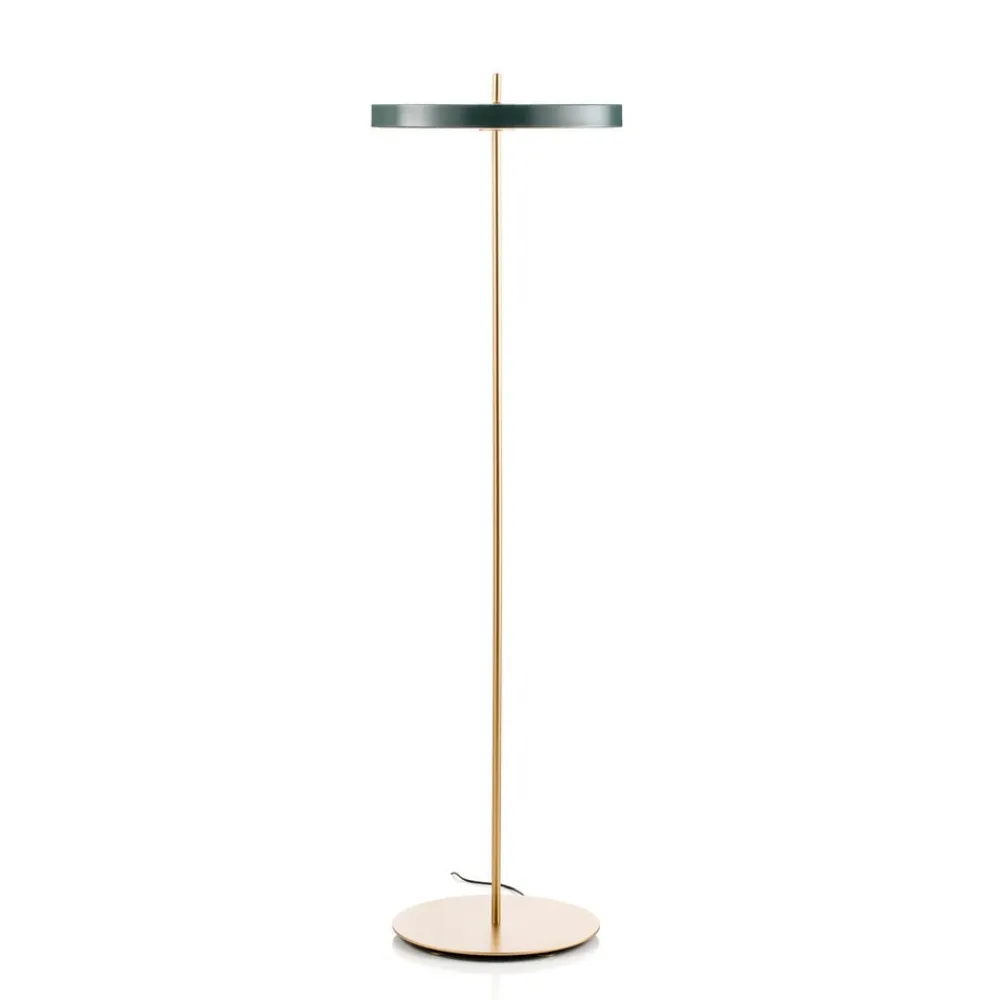 Asteria-lampeserien fra den danske designerlampeproducent UMAGE er blevet udvidet til at omfatte en gulvlampeserie. Ligesom alle de andre lys i serien imponerer den med sin flade skærm, som gør det muligt for lyset at stråle opad og nedad gennem satinerede diffusorer og består af et smalt metalbånd i kanten. Den flade, brede fod med sine 5 justerbare fødder sikrer stabilitet selv på ujævne gulve.