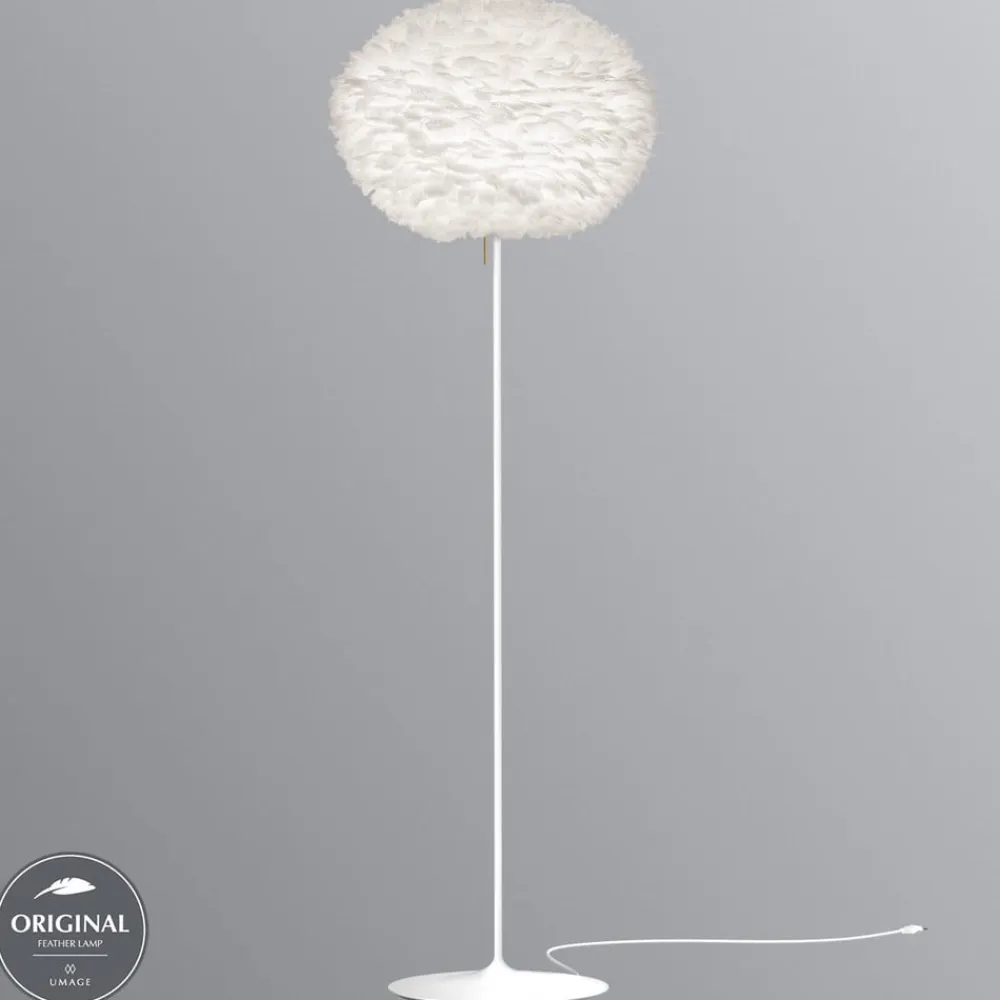 Designer gulvlampe Eos stor med hvid gåsefjer skærm