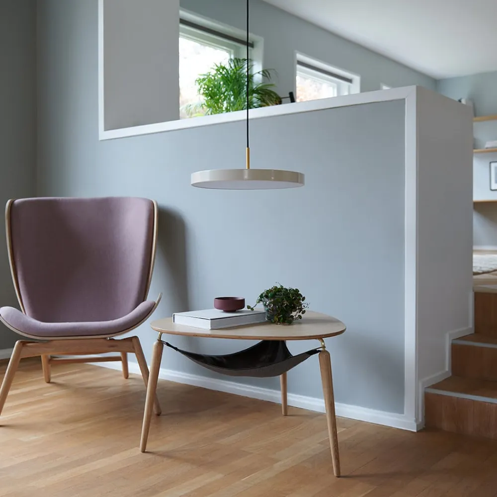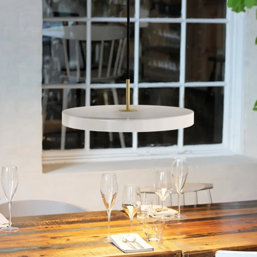 UMAGE LED-hængelampe Asteria Mini, perlehvid/messing, Ø 31 cm