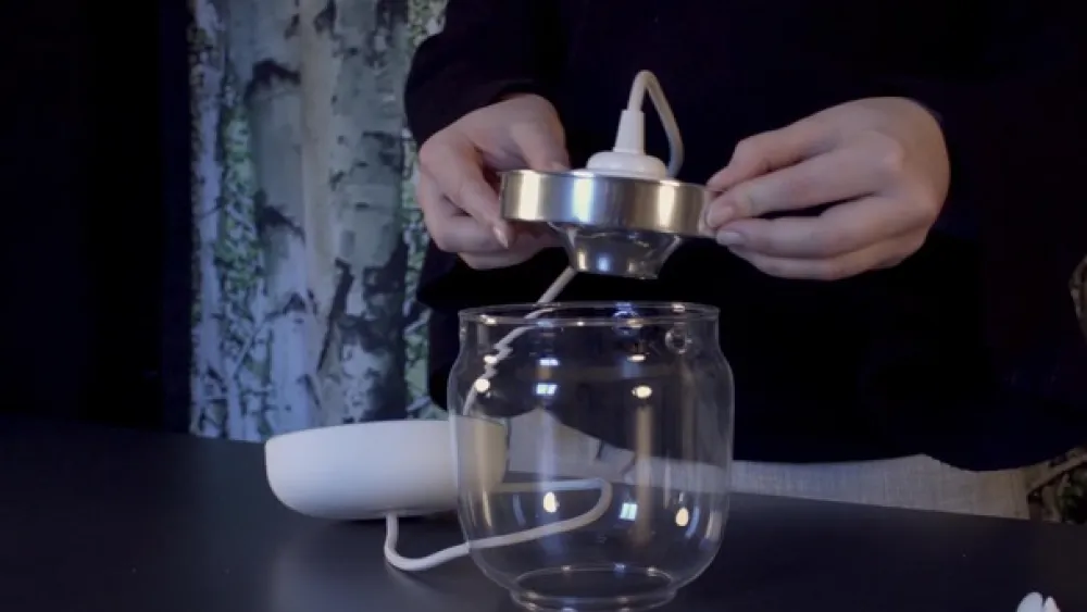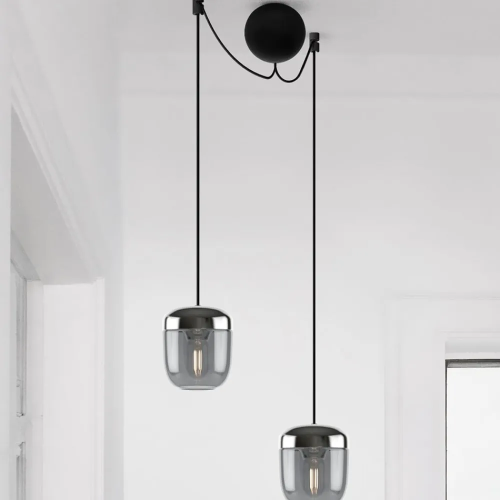 Varianten af Acorn med to lyskilder lader den danske lampeproducent UMAGE til byde en hængelampe, hvor to glasskærme med form som agern er kombineret med Cannonball-ophæng.
