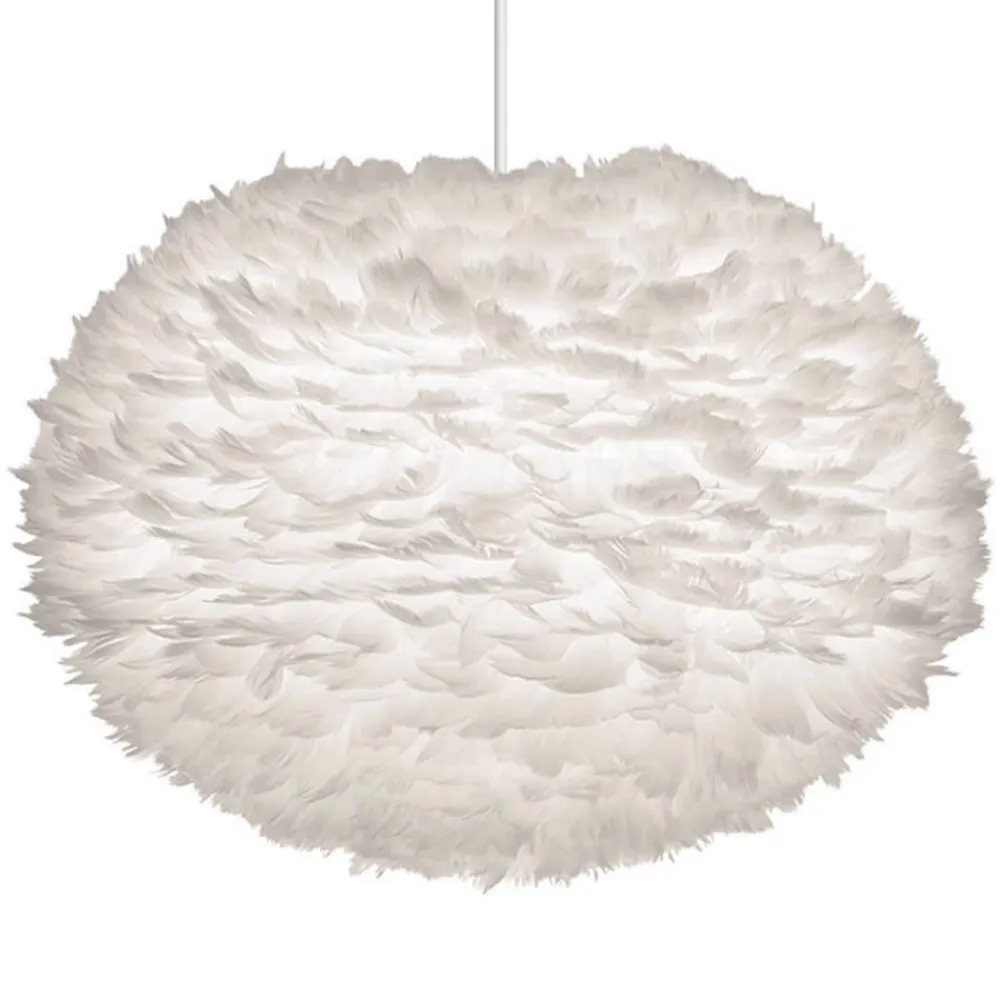 Hvid pendellampe Eos large med stor skærm med fjer