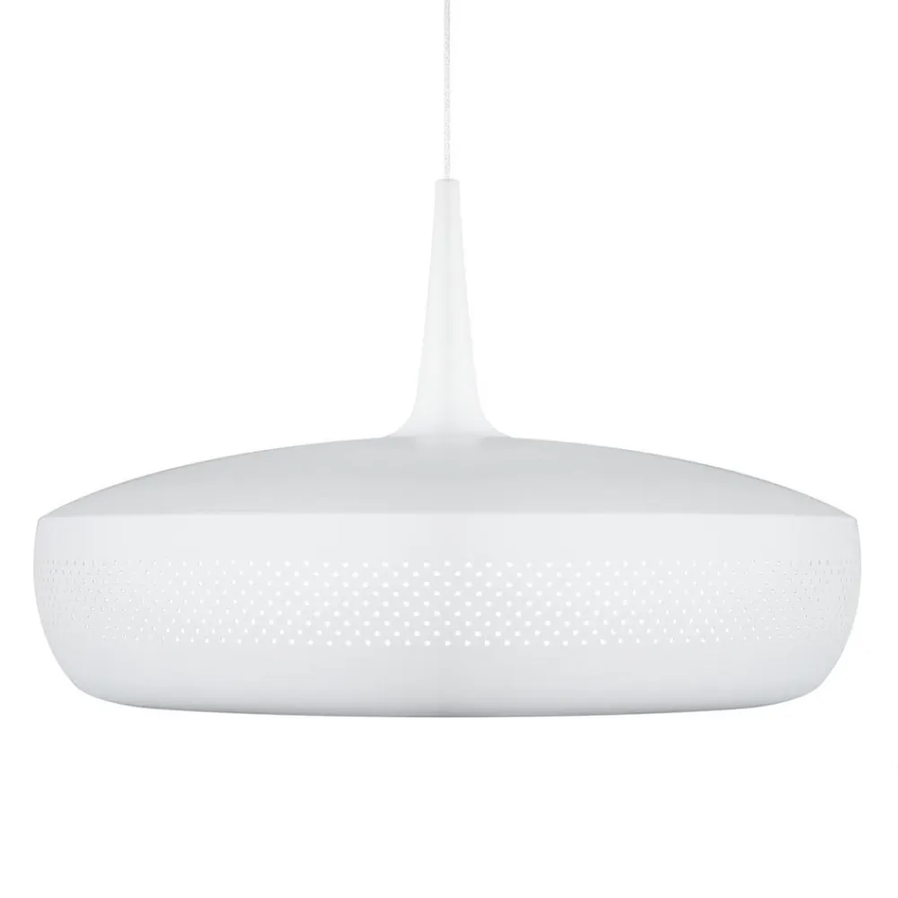 Hvidlakeret designer pendellampe Clava Dine i retro design