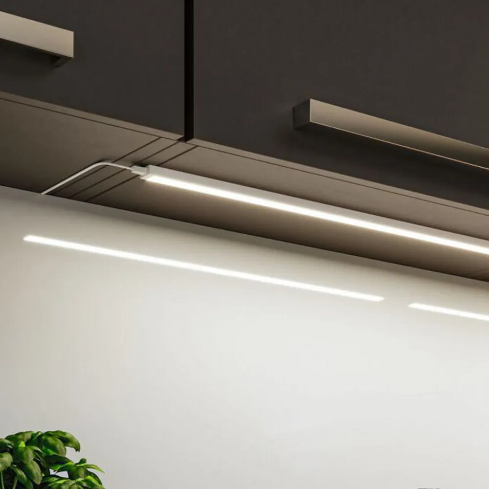 Moderne køkkenbelysning – LED underskabslampe Inline, forlængersæt med to lamper med CCT-funktion LED underskabslampen Inline er designet til funktionel belysning af køkkenbordplader. Den består af en slank aluminiumsprofil og skærm med rengøringsvenlige overflader og indeholder LED’er med justerbar lysfarve – udvidelsessæt med to lamper, tilslutningskabel, monteringsmateriale – designet til at supplere et startsæt (op til en maksimal samlet effekt på 24 W) – uden strømforsyningsenhed, uden afbryder – drift kun mulig i kombination med et Inline-startsæt!