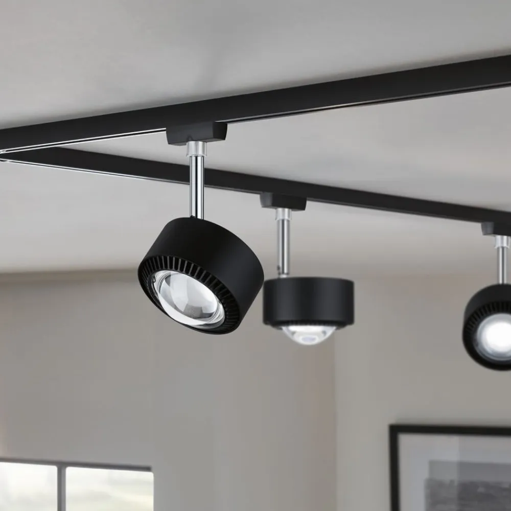 Lindby Skinnesystem>LED-spot 48 V Lumaro, sort, Ø 7,3 cm, aluminium, dæmpbar
