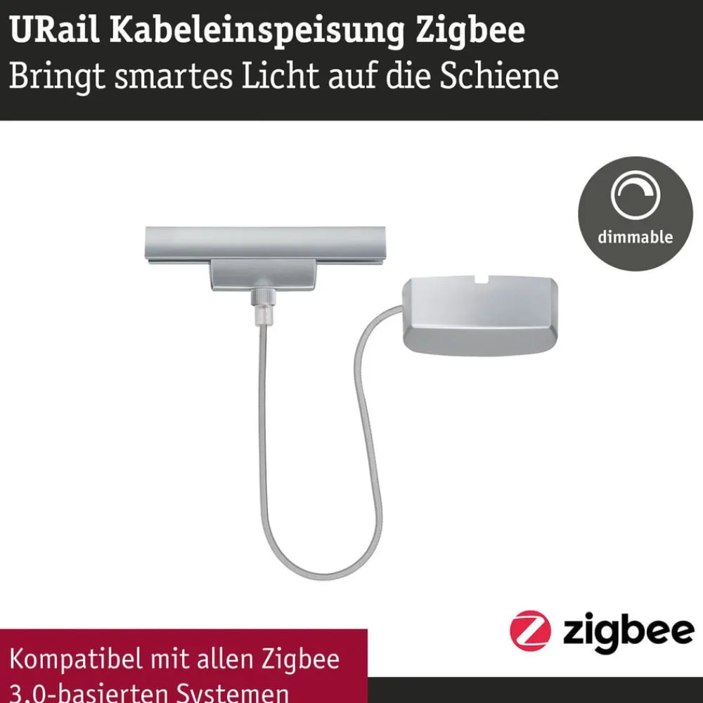 Denne 230 volt kabelindføring med integreret Zigbee 3.0-styreenhed tænder eller dæmper et komplet URail-system. Indføringen giver stor fleksibilitet, da skinnesystemet ikke nødvendigvis skal løbe langs indføringsstedet. Kablet kan integreres i skinnen på et vilkårligt sted. Denne kabelindføring er en af mange systemdele fra URail-serien. Sammen med andre komponenter kan der designes et personligt 230 volt URail skinnesystem.