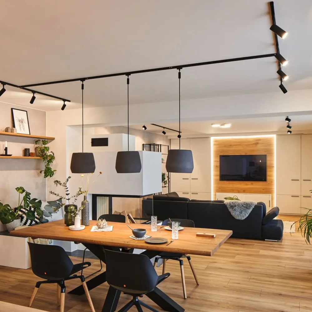 Som navnet antyder, er URail T-stikket T-formet og kan således forbinde tre URail skinner til hinanden. Dette åbner muligheden for at skabe et individuelt belysningskoncept, der kan tilpasses rummets form. Stikket lavet af plast og metal er designet til et maksimalt output på 1.000 watt og tilpasser sig perfekt til systemet med sin farve.
