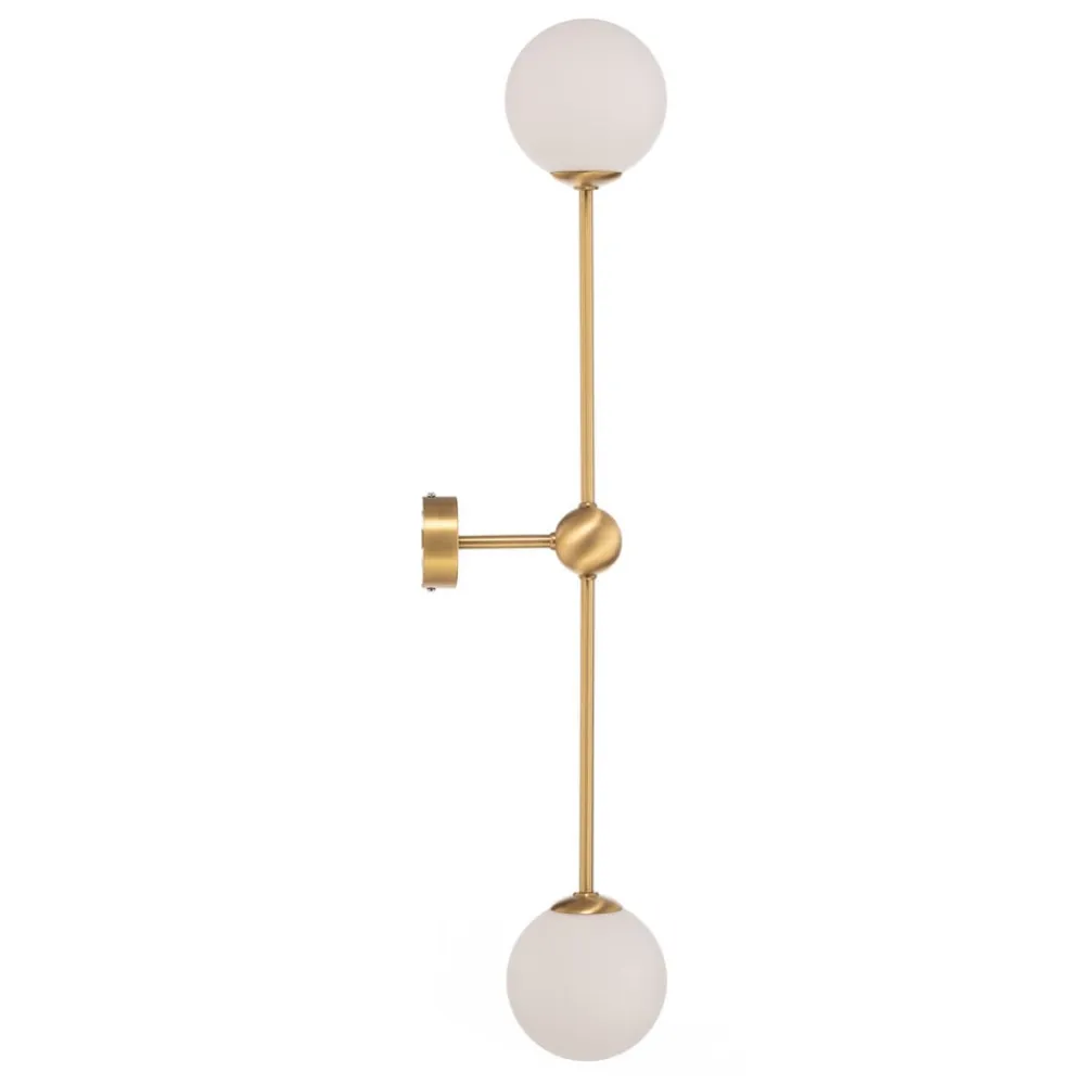 Væglampe Alison, 2 lyskilder, imponerer med sin harmoniske kombination af mat glas og højkvalitets metal i messing og hvid. Dette moderne belysningselement passer perfekt ind i forskellige boligområder som stuen, entreen og spisestuen og skaber en stilfuld atmosfære. Den europæisk fremstillede lampe står for kvalitet og tidløst design.