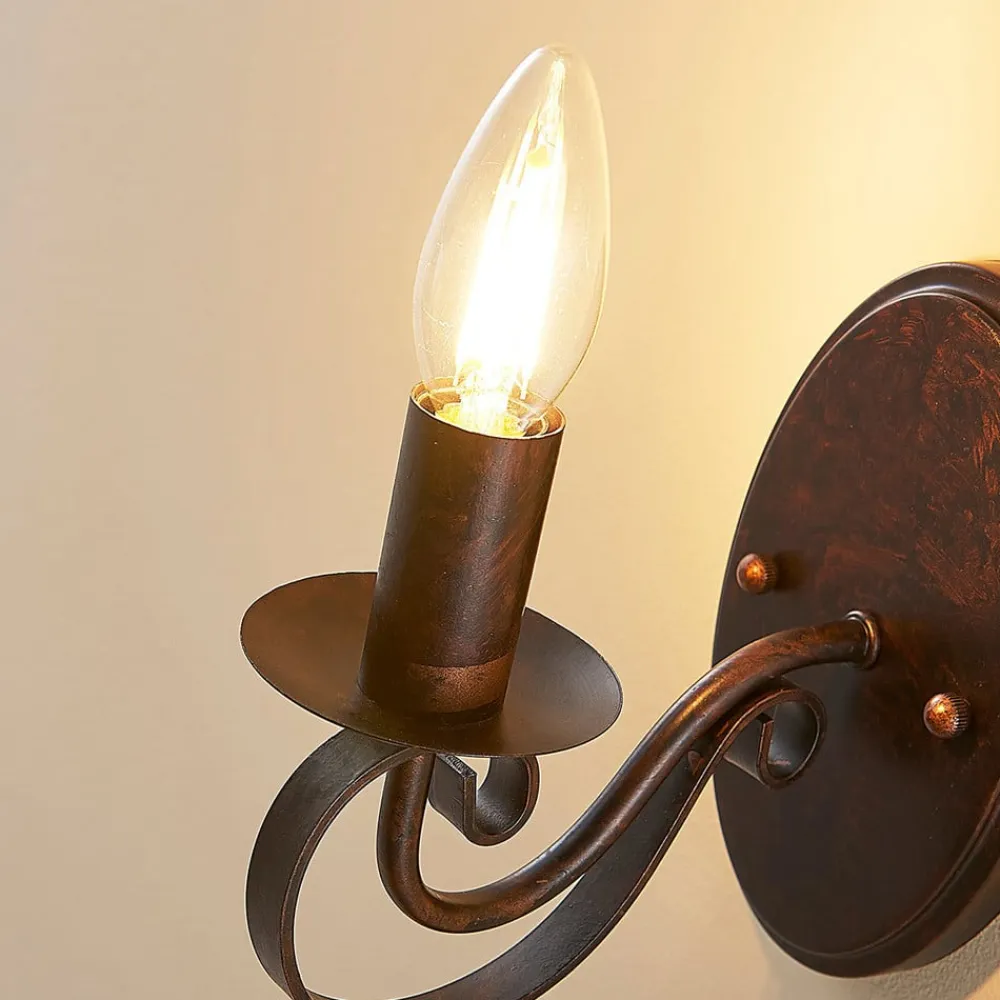 Lucande væglampe Caleb, 18 cm, rustfarvet, metal, E14