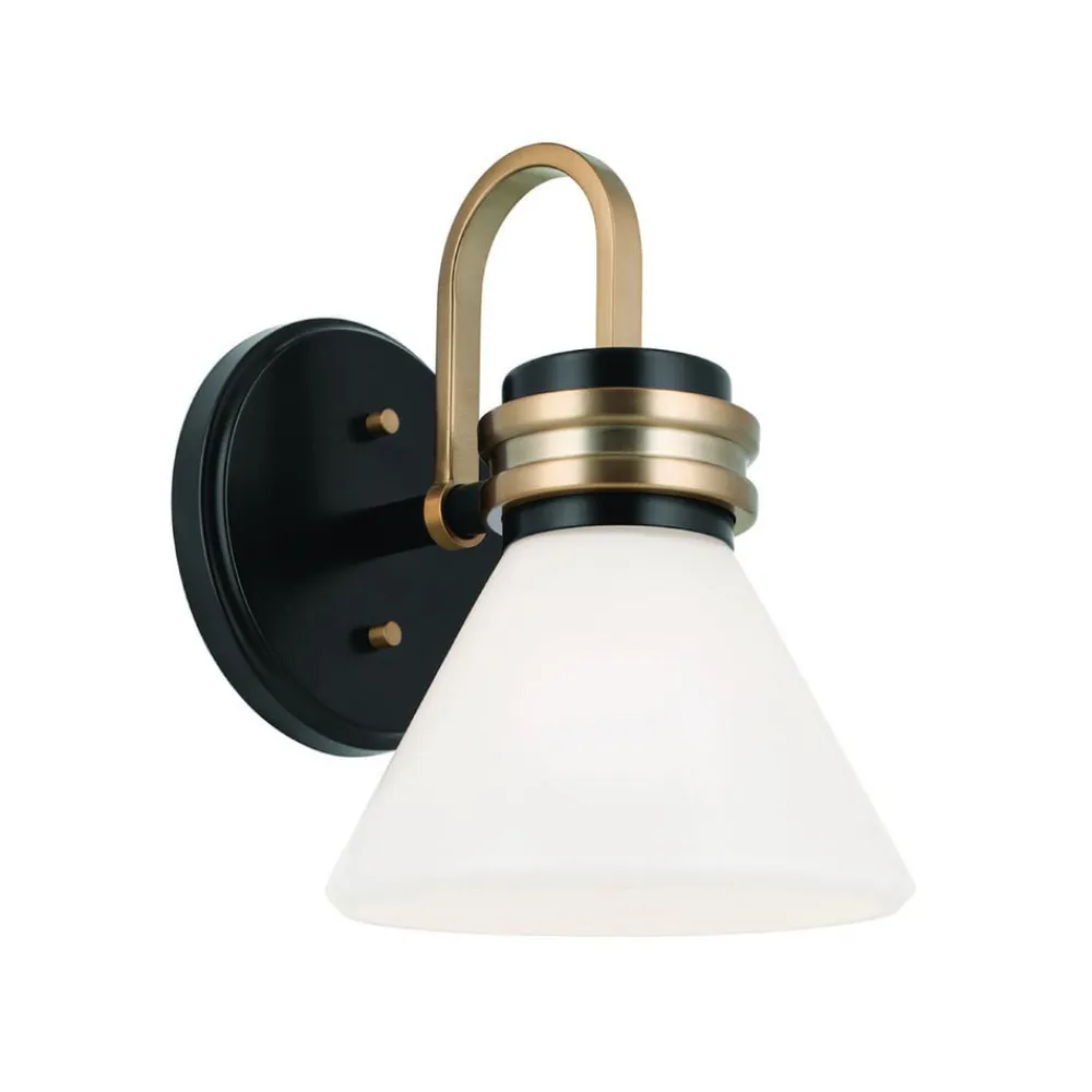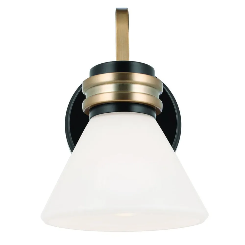 Væglampe Farum 1 består af et stålstel og en opal hvid, kegleformet skærm i glas og er takket være kapslingsgrad IP44 perfekt til badeværelset, hvor den placeret ved siden af spejle giver et flot look og harmonisk belysning. Lampen med G9-fatning leveres med LED-pære med varmhvid lysfarve, som er nem at udskifte.