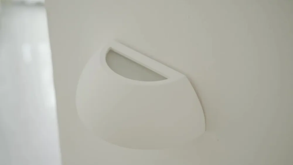 Dekorativ væglampe Felia af gips med dobbelt lysudtag, der kan males Det meste af lyset fra denne indirekte væglampe slipper opad, men det skinner også nedad takket være et ekstra udtag af matteret glas. Det giver et varmt og blødt lys, som er meget indbydende og hyggeligt. Ideelle betingelser for opholdsrum, hvor man trækker sig tilbage om aftenen og nyder de afslappende timer. Felia er dog ikke kun en førsteklasses anbefaling som væglampe med indirekte lys i hjemmet, men også i den kommercielle sektor, hvad enten det er som værdig belysning til restaurationsbranchen eller for eksempel til belysning af et venteværelse i en lægepraksis for at få patienterne til at føle sig godt tilpas.