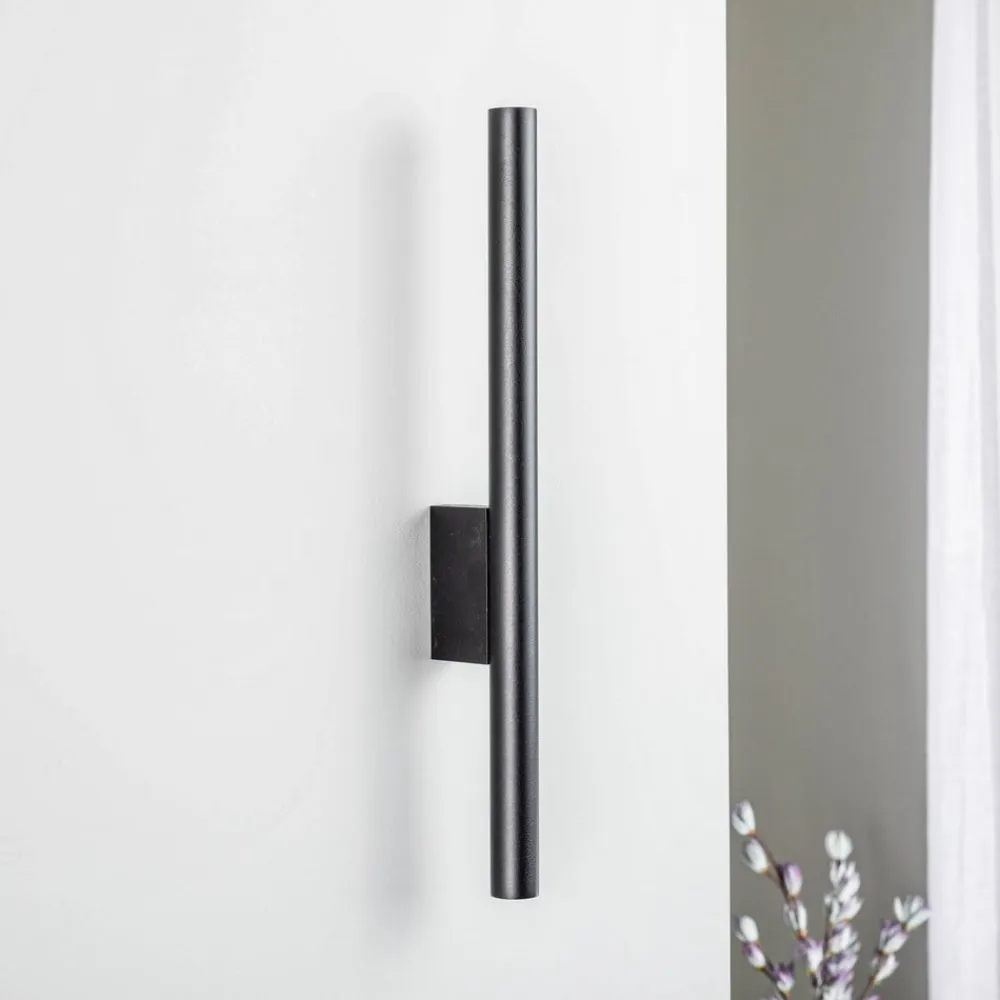 Væglampe Laser i sort forener moderne design med funktionel alsidighed. Den er fremstillet af højkvalitetsstål og passer perfekt ind i forskellige boligområder som stuen, soveværelset, entreen og spisestuen. Den standardiserede fatning G9 gør det nemt at udskifte LED-lyskilden, hvilket letter tilpasningen til individuelle lysbehov.