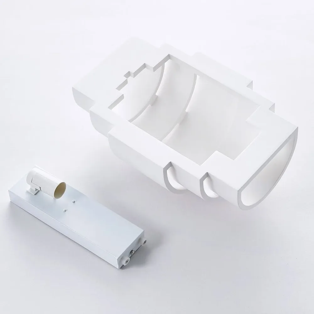 Marit gipsvægslampe med trinvis look Marit er en virkelig fortryllende lyskilde til opholdsrummet. Lyseffekten er virkelig storslået og skaber et smukt samspil mellem lys og skygge. Det skyldes skærmens aftrappede design, som lader lyset slippe ud forskellige steder.