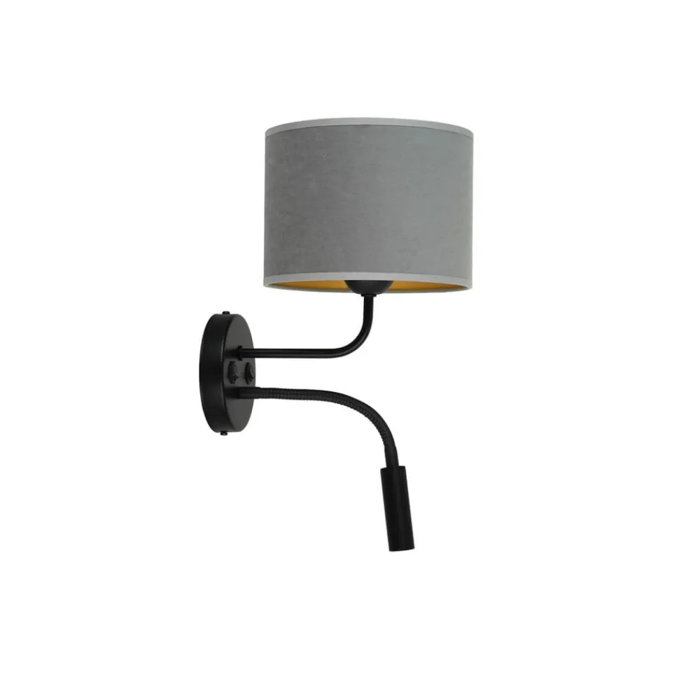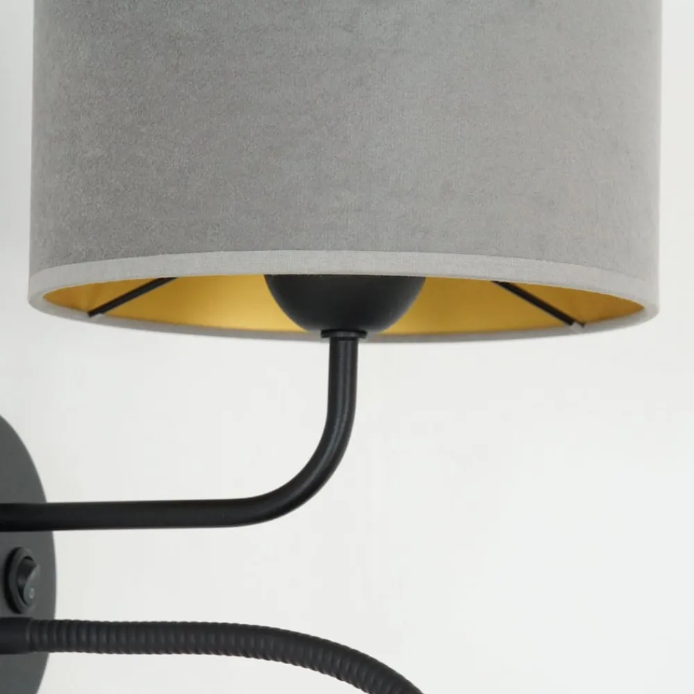 Væglampe Roller forener stilfuld elegance med praktisk funktionalitet. Lampen er fremstillet af højkvalitets velour og robust metal og fås i en flot grå-sort farve. Denne kombination giver ethvert rum, hvad enten det er stuen eller soveværelset, en helt særlig atmosfære. Den integrerede læselampe giver desuden målrettet belysning, der er ideel til afslappede læseaftener.