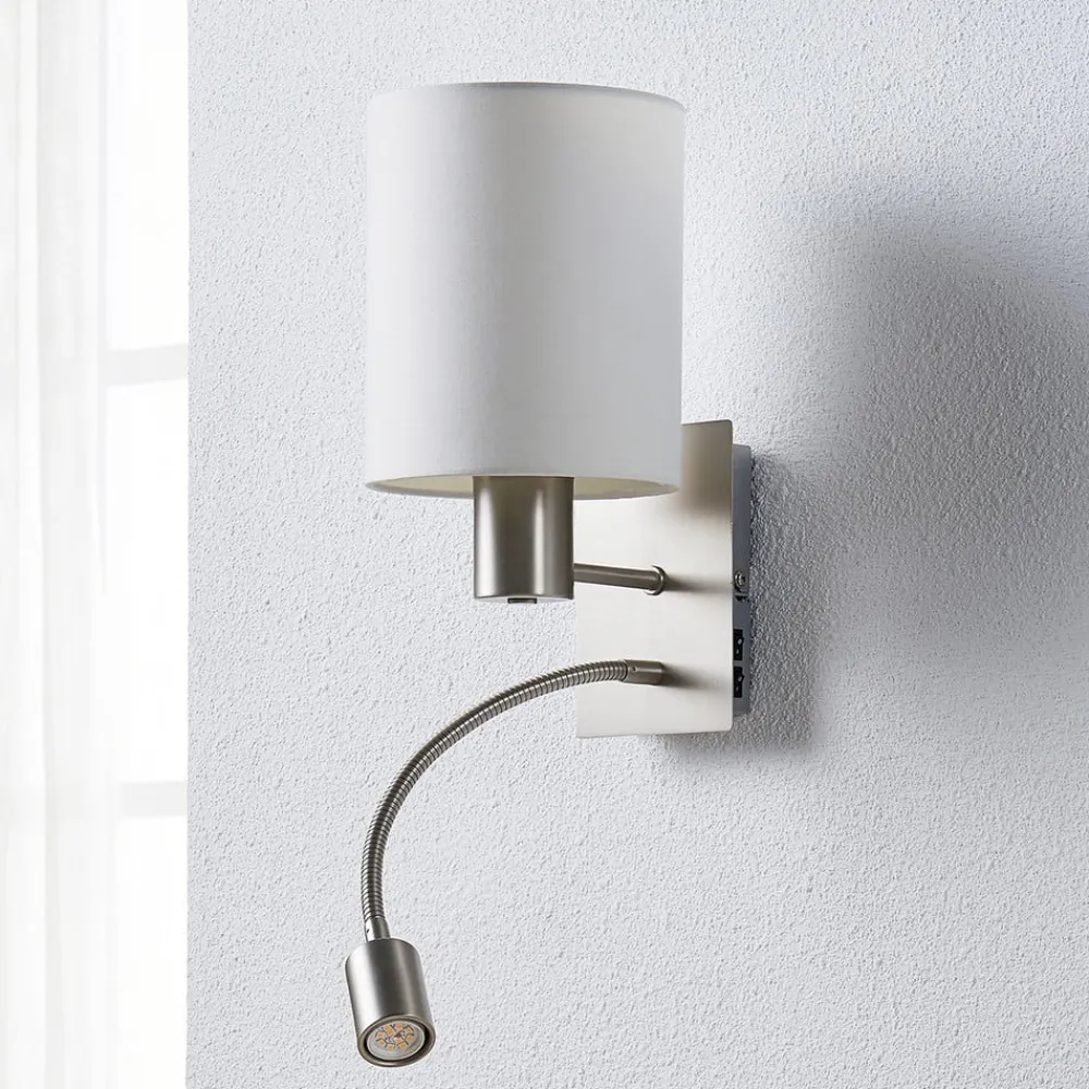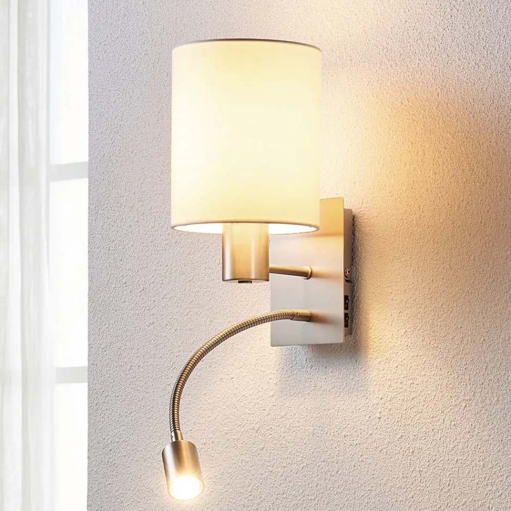 Lindby væglampe Shajan, 29 cm, tekstil, E27, LED-læselampe