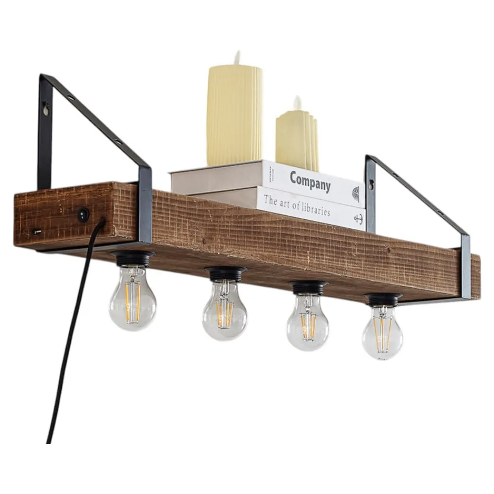 væglampe Vatana, træ, stik, USB-port, 80 cm^Lindby Sale