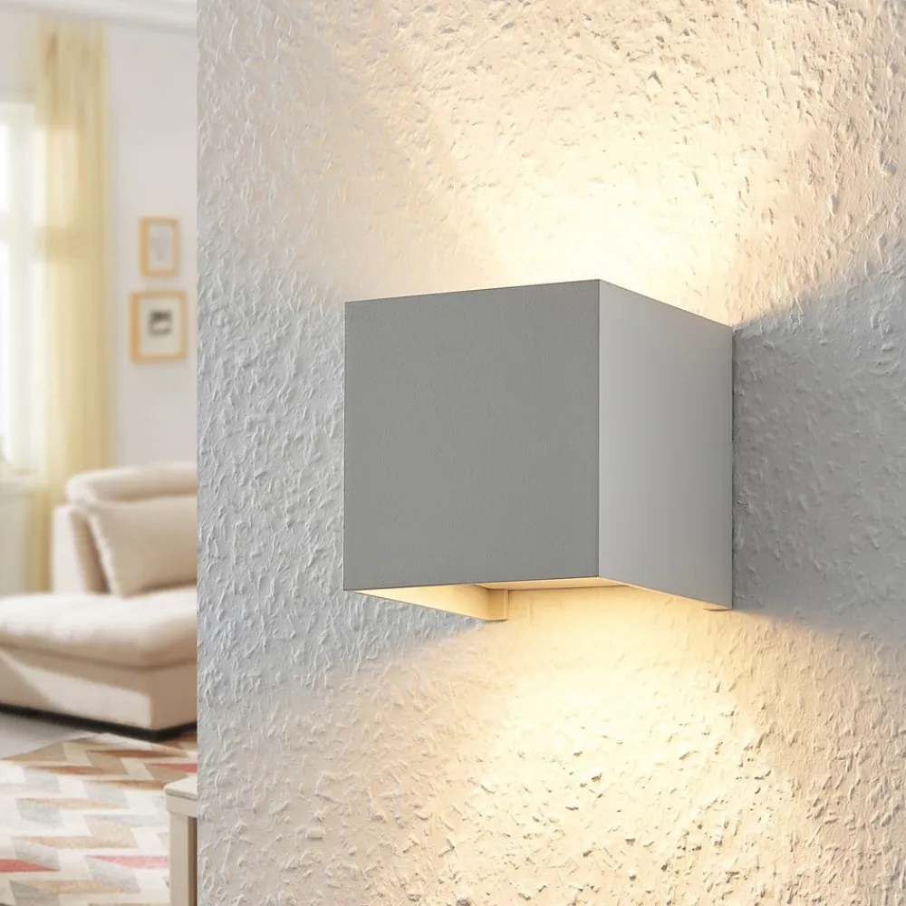 Hvid, kantet væglampe Zuzana med justerbar lysvinkel i et sæt med 2 Zuzana består af en kubeformet aluminiumskrop og har en enkel hvid finish, der er meget tidløs og kan kombineres med mange møbler. Man skal også være særlig opmærksom på lyseffekten, som selvfølgelig kun kan ses, når lyset er tændt. Afhængigt af indstillingen sendes lyset så opad og nedad i en lige stor vinkel eller består af en smal lysstråle og en bredere lysstråle, hvorved dette kan realiseres i toppen eller bunden – væglampen leveres i et praktisk sæt med to