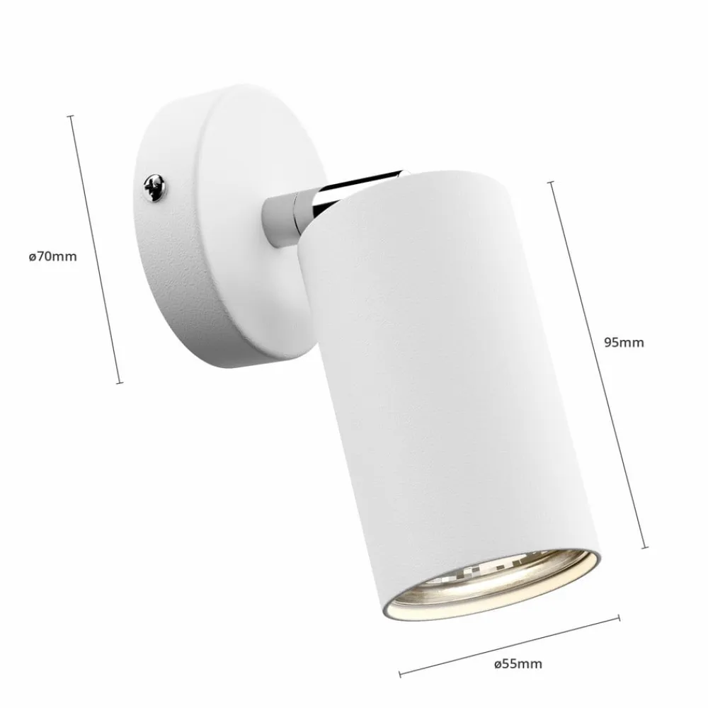 Vægspot Eye Spot med 1 lyskilde i elegant hvidt design forener moderne design med funktionel fleksibilitet. Denne spotlight er fremstillet af højkvalitetsmetal og passer perfekt ind i forskellige boligområder som stuen, entreen, soveværelset og spisestuen. De klare linjer og den diskrete farve gør den til et tidløst element, der harmonerer med forskellige indretningsstilarter.