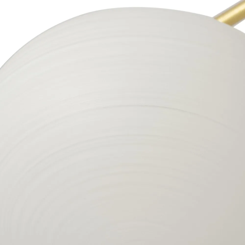 Gylden Valisa-loftslampe med fem skærme Den femarmede Valisa-loftslampe fra Lindby har en iøjnefaldende gylden ramme. De runde skærme har en ensartet hvid farve med et fint mønster i glasset. De er uigennemsigtige og udsender derfor blændfrit lys til omgivelserne. Med sit tiltalende design og alsidighed er Valisa-loftslampen en berigelse for ethvert interiør.