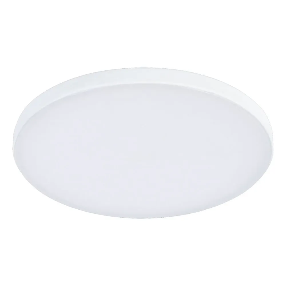 Veluna Edge IP44 indbygget LED-lys i rund form, varm hvid lysfarve Det runde Veluna VariFit Edge indbyggede LED-panel imponerer med sit rammeløse design i hvid og passer næsten sømløst ind i ethvert loft. Takket være den fleksible VariFit-teknologi kan klemmefjedrene justeres under installationen, så panelet kan installeres i forskellige borehuller. LED-panelet udsender et diffust, blændfrit og hyggeligt lys med en varm hvid lysfarve gennem det matterede plastdæksel. Det har et særligt fladt design, så det passer ind i hulrumsdybder på 3,5 cm – Velegnet til badeværelser og fugtige rum takket være IP44-beskyttelse – Højt lysudbytte med bredt lysområde – VariFit fleksibel installation med justerbare klemfjedre
