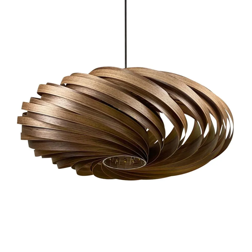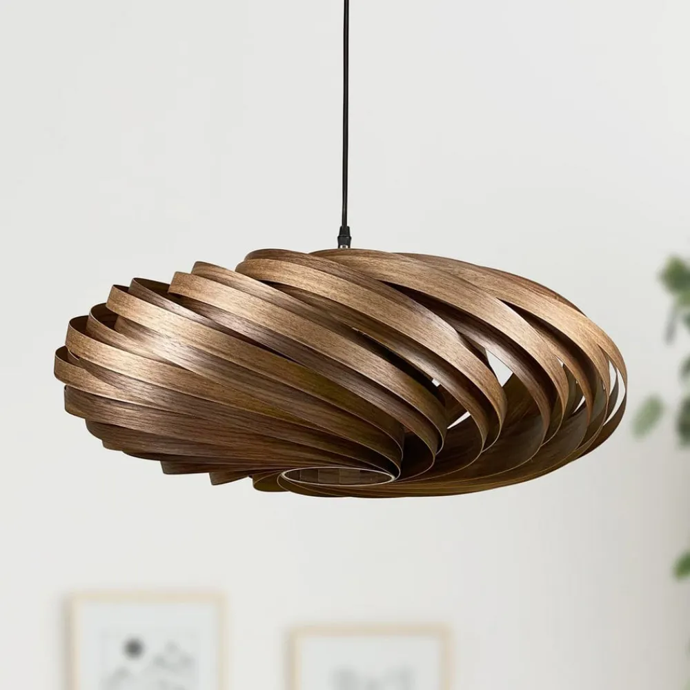 Noble træ vedhængslampe Veneria lavet af amerikansk valnød finer