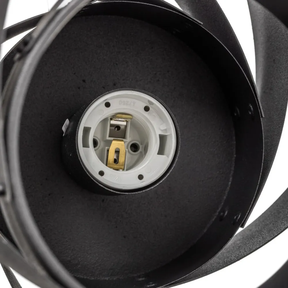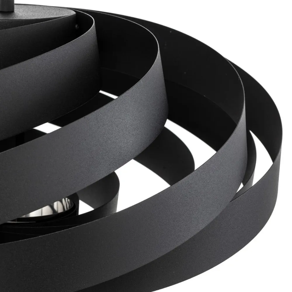 Enestående Vento-loftlampe i sort Moderne design, fantastisk belysning og dekorative lysaccenter – det er, hvad Vento-loftlampen står for, med en skærm, der straks fanger øjet, selv når den ikke er tændt. Skærmen består af spiralformede metalstrimler, der skaber en attraktiv effekt, når lyset skinner gennem revnerne mellem metalelementerne. I neutral sort passer Vento godt sammen med mange indretningsfarver.