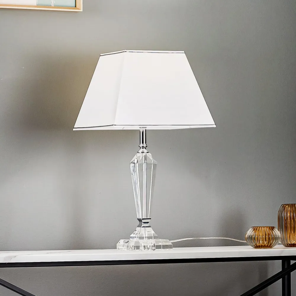 Hvid Veronique bordlampe med en skåret krystalbase