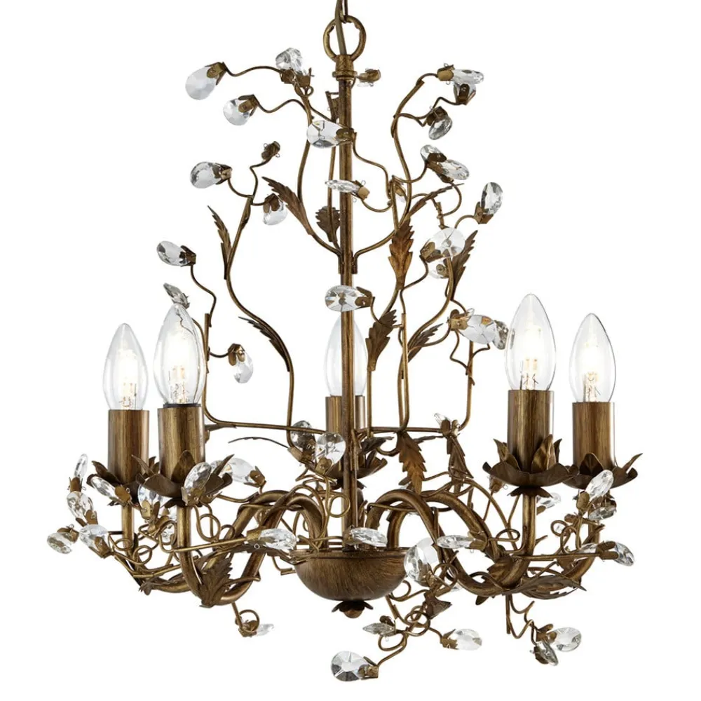 Pragtfuld lysekrone Almandite 5 lys i yndefuld blomsterstil