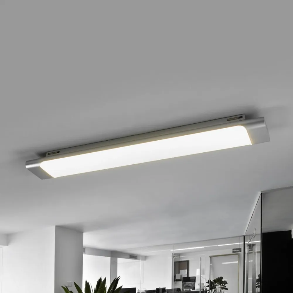 Funktionelt udseende Vinca LED-loftlampe Grundformen på denne LED-loftlampe er kantet, men den let afrundede form dominerer udseendet i siderne. Aluminiumshuset er udstyret med en diffusor af polykarbonat, som giver en blødere lysfordeling. De integrerede LED’er er energibesparende og lysstærke, så Vinca kan oplyse rummet med passende lysstyrke. LED-loftlampen passer godt på kontorer eller i køkkener, hvor der er brug for stærkt lys til at udføre arbejde.