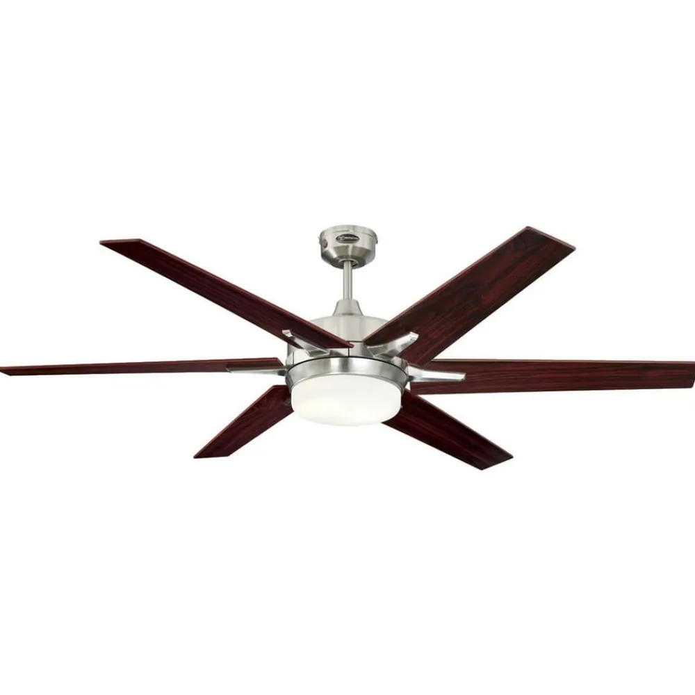 Loftventilatoren Cayuga er udstyret med seks vendbare vinger i lyst ahorntræ og palisander, og i kombination med kabinettet i børstet nikkel fremstår den meget elegant og moderne. Cayuga er ideel til afkøling af større rum. Udstyret med lys. Fjernbetjening medfølger.