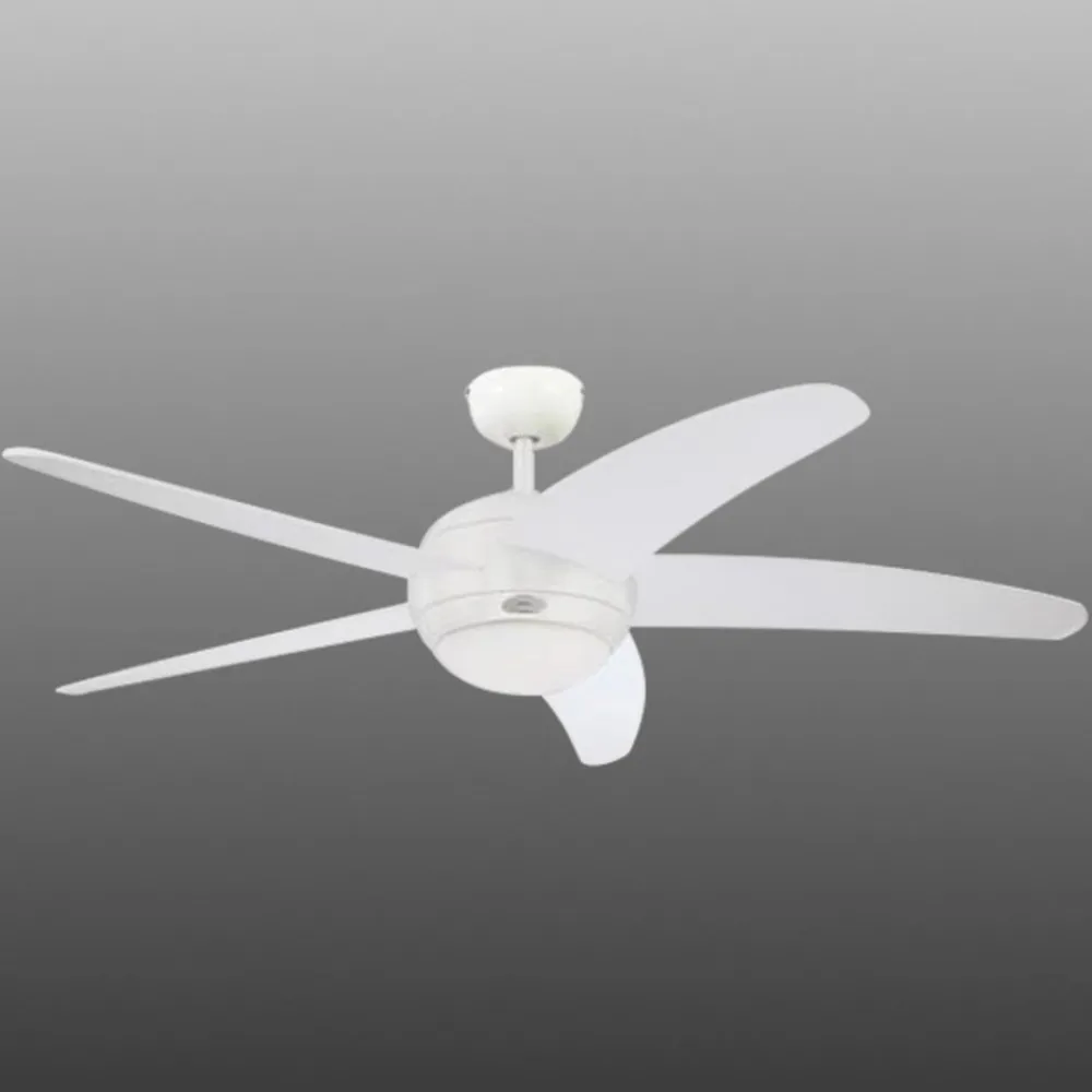 Moderne elegance kendetegner udseendet af denne hvide loftventilator, der med en diameter på 132 cm kan friske luften op i et rum på 25 kvadratmeter. Bendan er desuden udstyret med en enkeltlampe med opal glasafskærmning, hvor der kan monteres en R7-pære med maks. 80 watt, som skaber en stemningsfuld belysning i rummet. Forlængerstang medfølger.