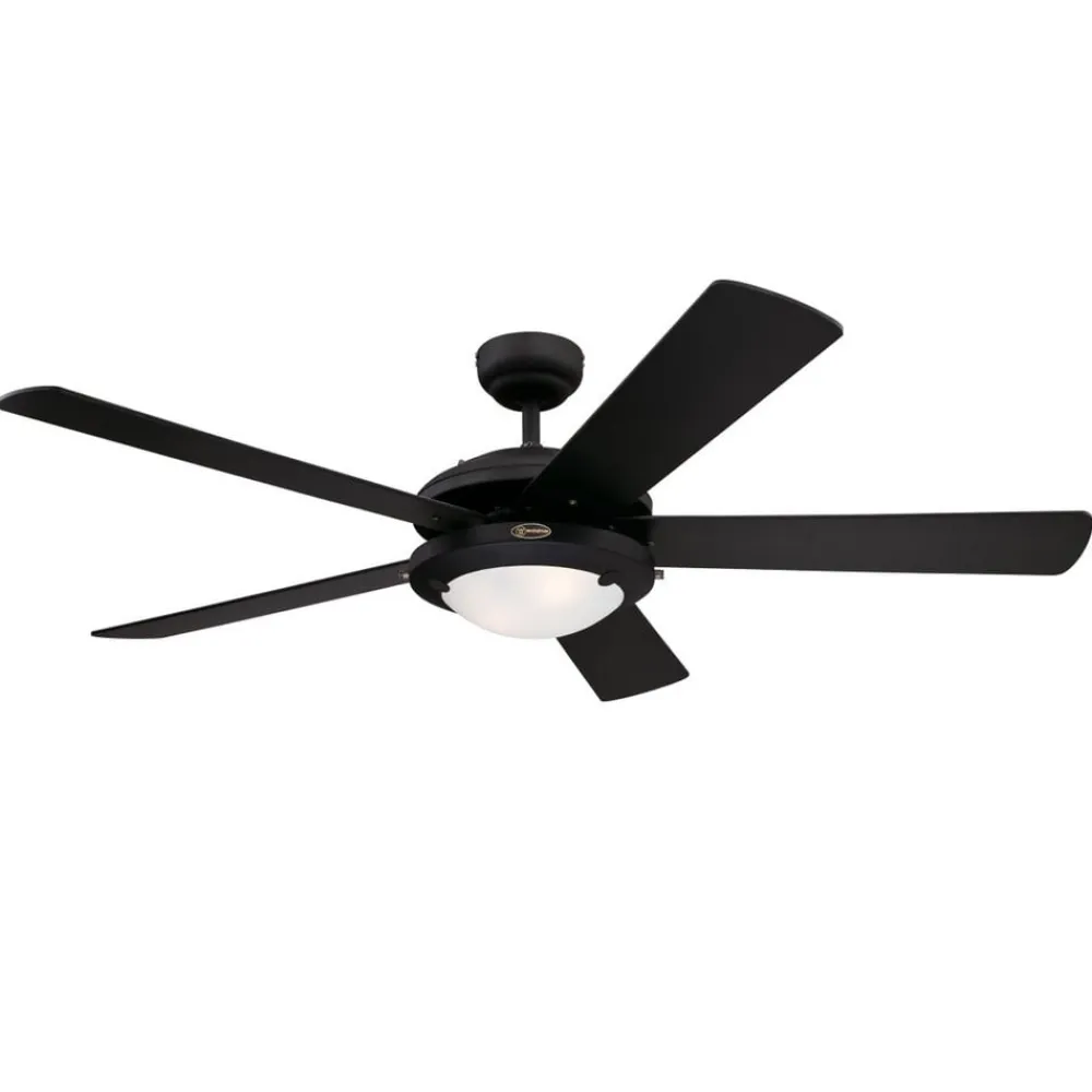 Kraftfuld ydeevne, et fantastisk design samt 5 vendbare vinger i mat sort og sølv, dette kendetegner loftventilatoren Comet, der betjenes via en integreret trækkontakt. I midten er der installeret en glaslampe, hvormed Comet også klarer belysningen i rummet.
